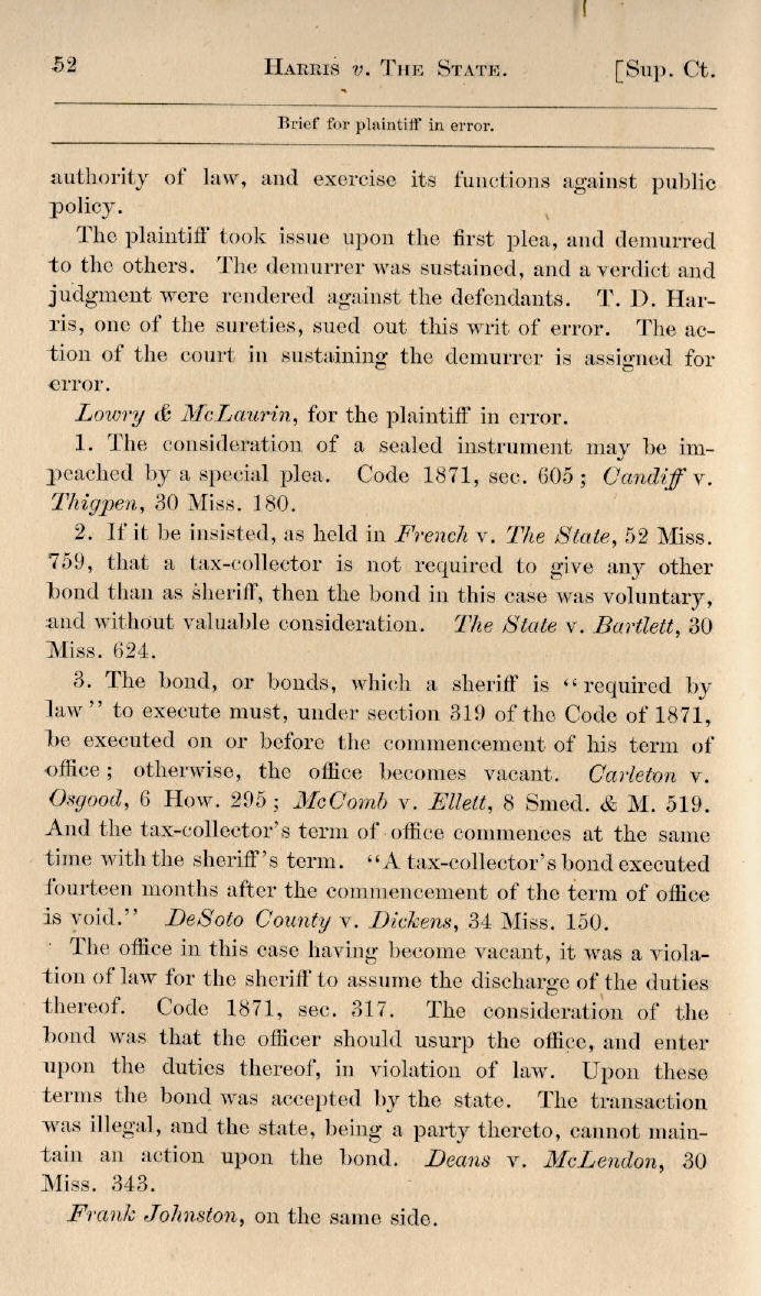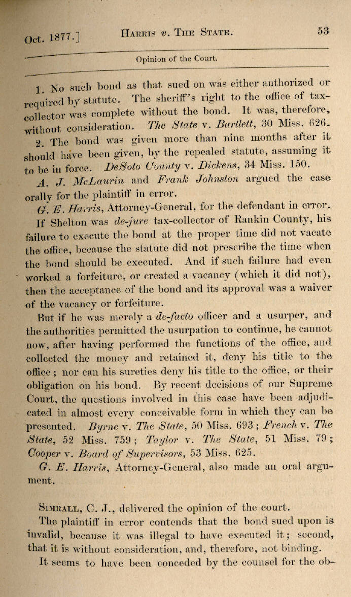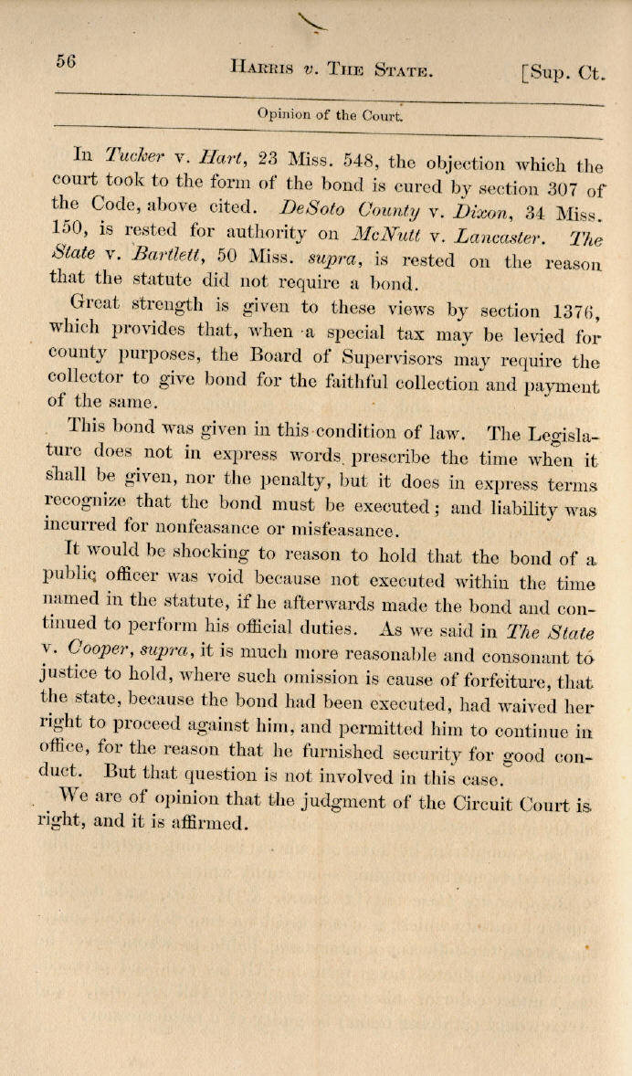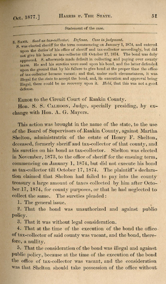 | T. D. Harris v. The State to Use of Rankin County 50, 51, 52, 53, 54, 55, 56 |
