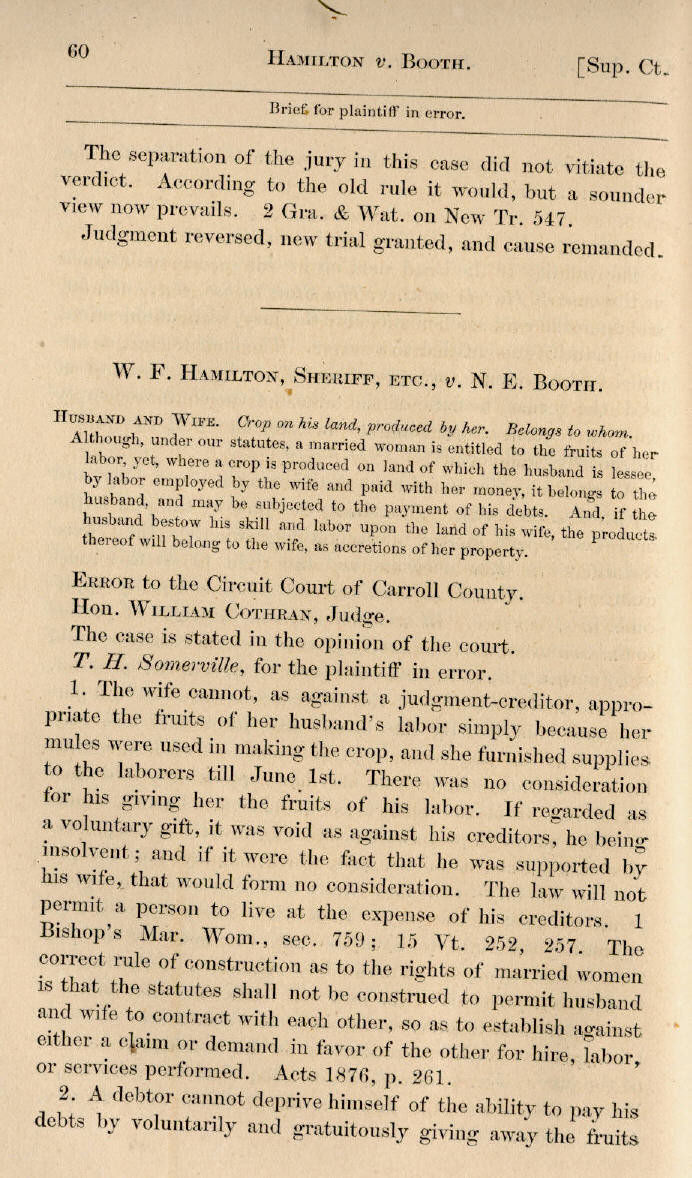 | W. F. Hamilton, Sheriff, etc., v. N. E. Booth 60, 61, 62, 63 |