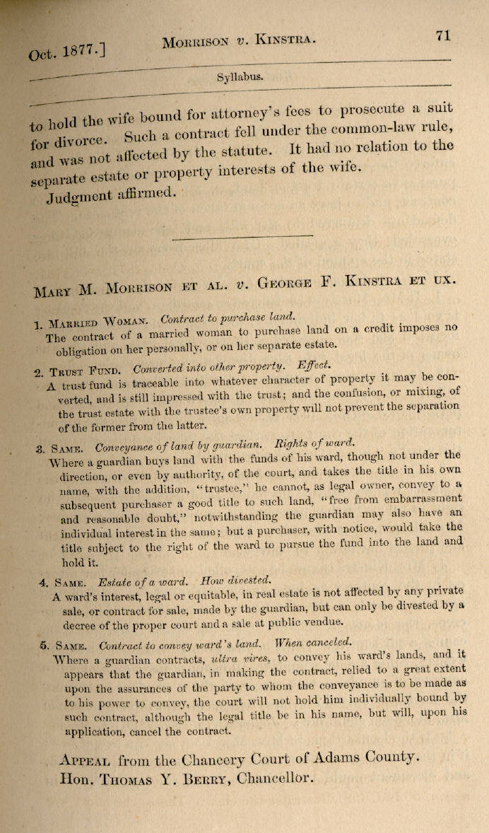 | Mary M. Morrison et al. v. George F. Kinstra et ux. 71, 72, 73, 74, 75, 76, 77 |