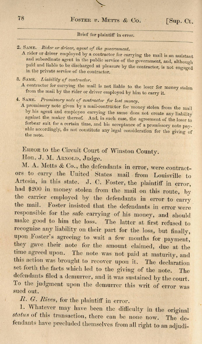 | John C. Foster v. M. A. Metts & Co. 77, 78, 79, 80, 81, 82, 83 |