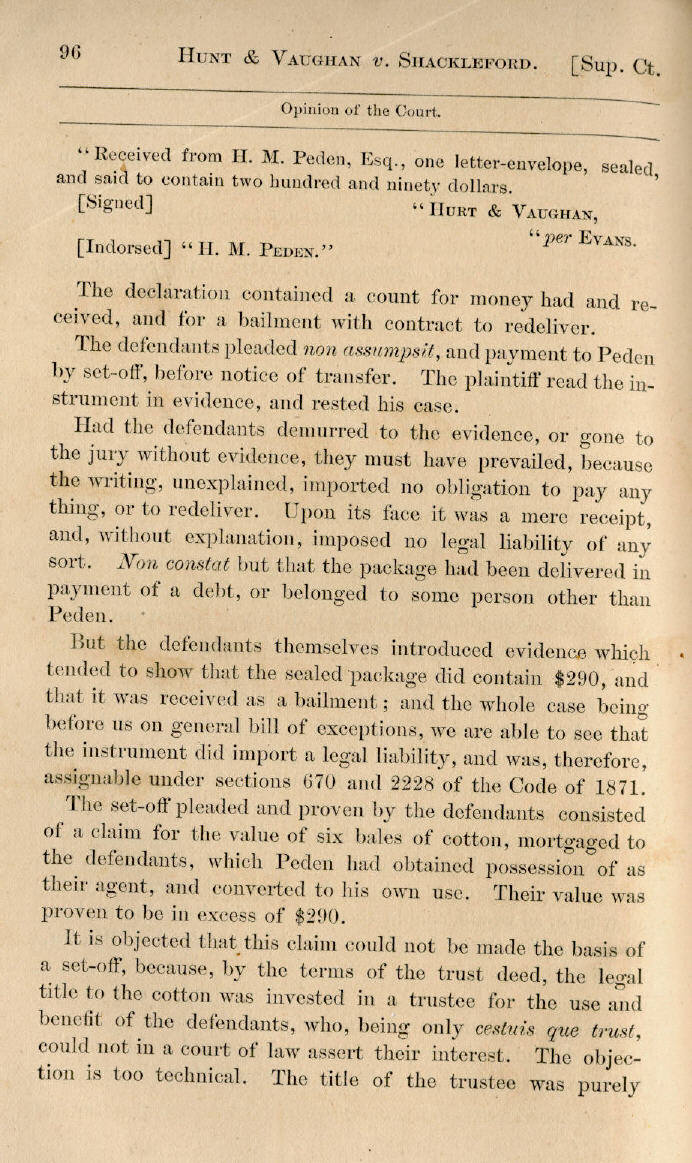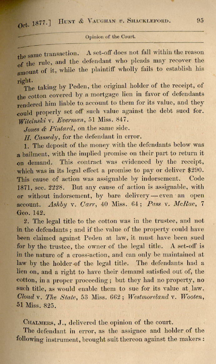 | Hunt & Vaughan v. G. W. Shackleford 94, 95, 96, 97 |