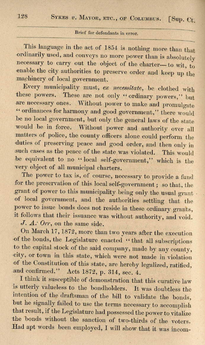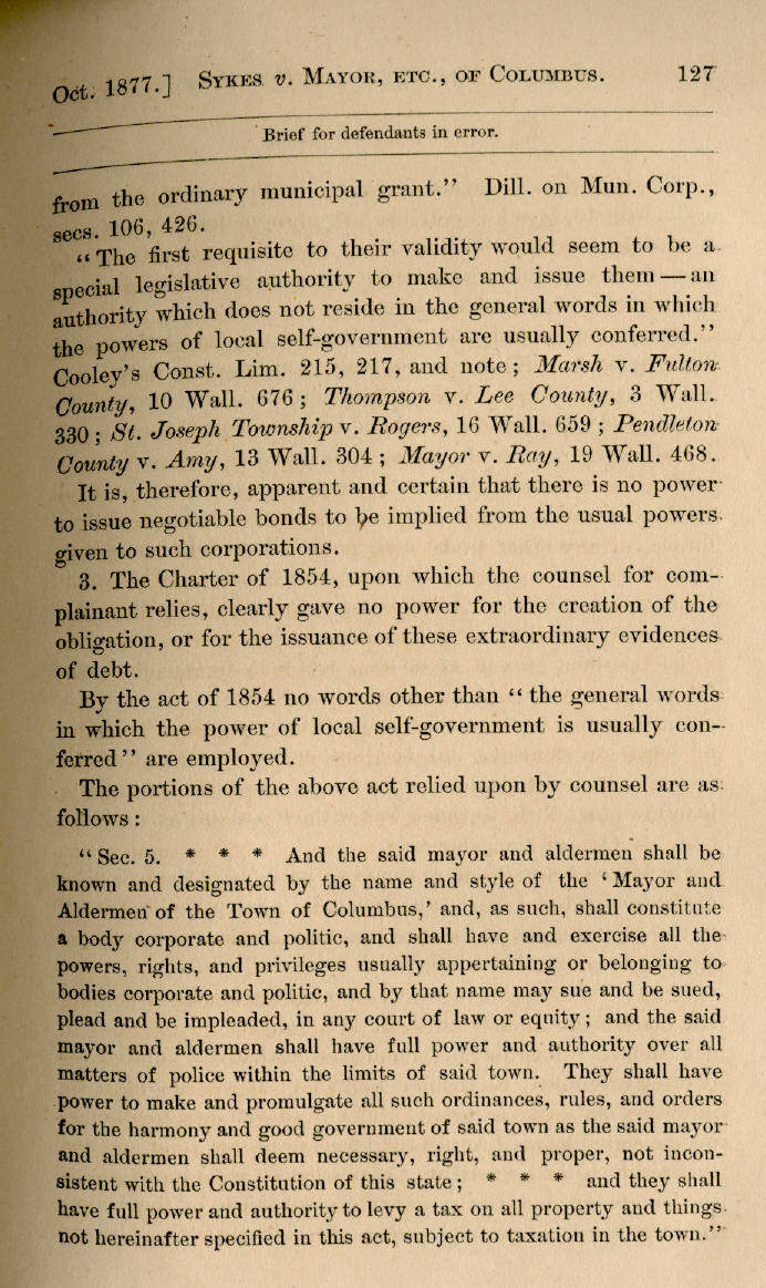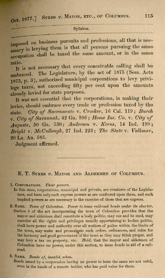 | E. T. Sykes v. Mayor and Aldermen of Columbus 115, 116, 117, 118, 119, 120, 121, 122, 123, 124, 125, 126, 127, 128, 129, 130, 131, 132, 133, 134, 135, 136, 137, 138, 139, 140, 141, 142, 143, 144, 145 |