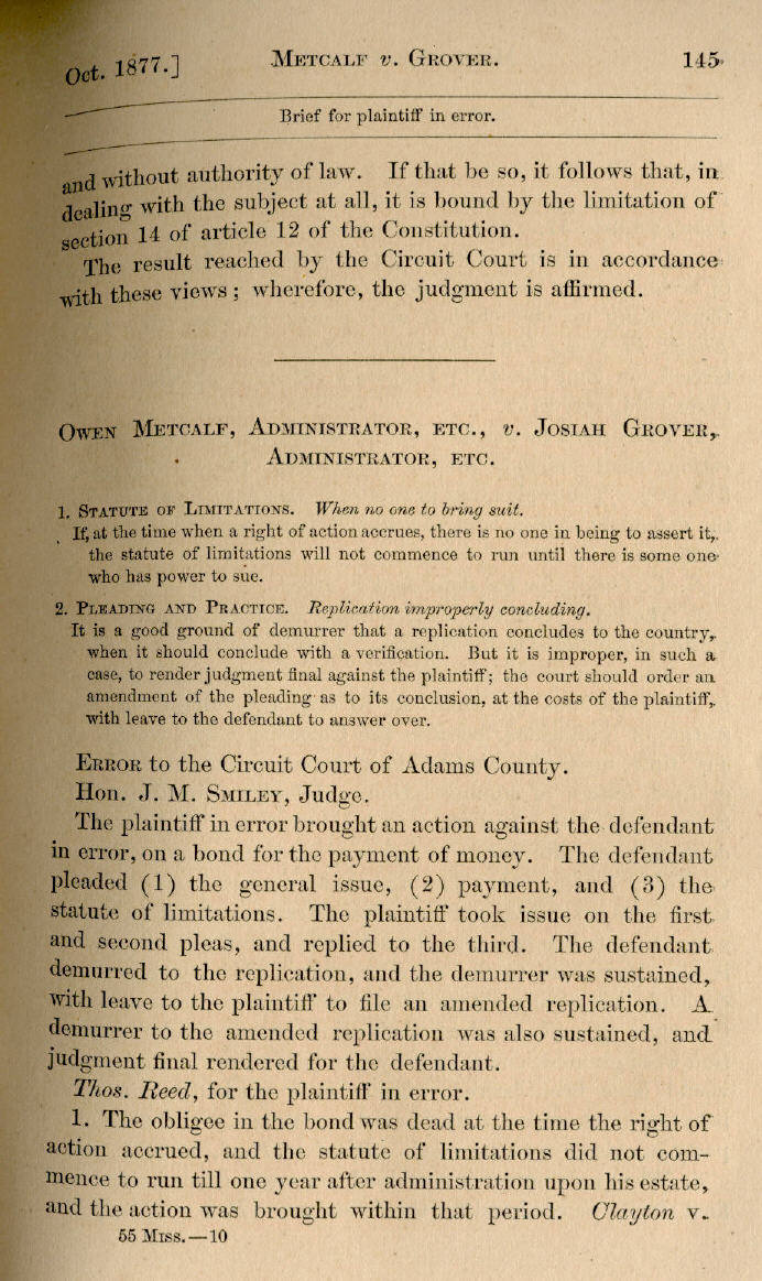 | Owen Metcalf, Administrator, etc., v. Josiah Grover, Administrator, etc. 145, 146, 147 |