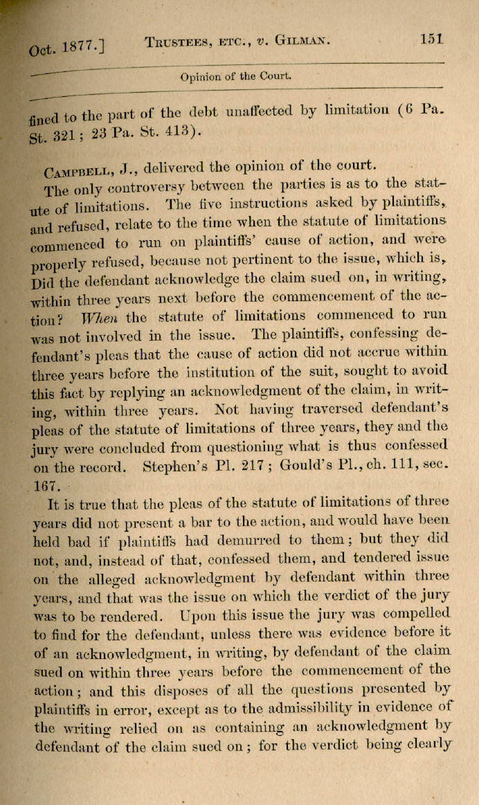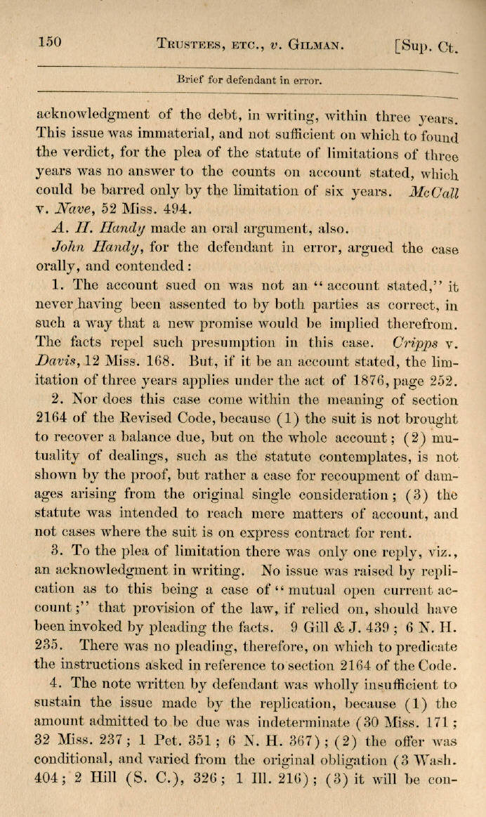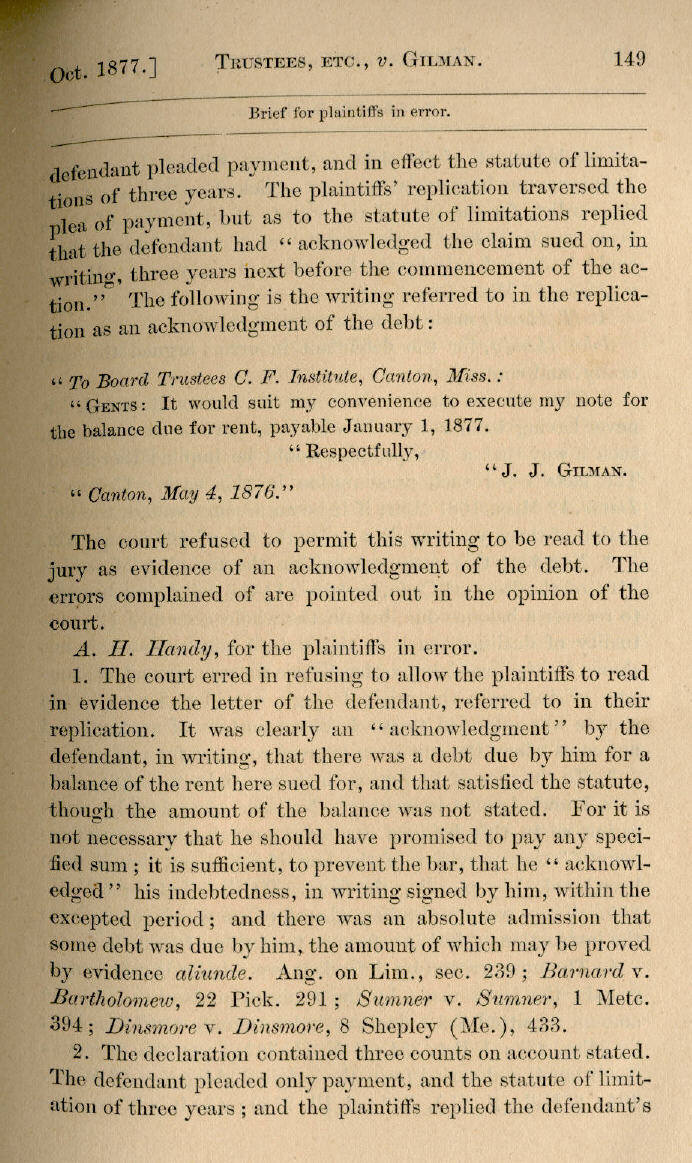 | Trustees of Canton Female Academy v. J. J. Gilman 148, 149, 150, 151, 152, 153 |