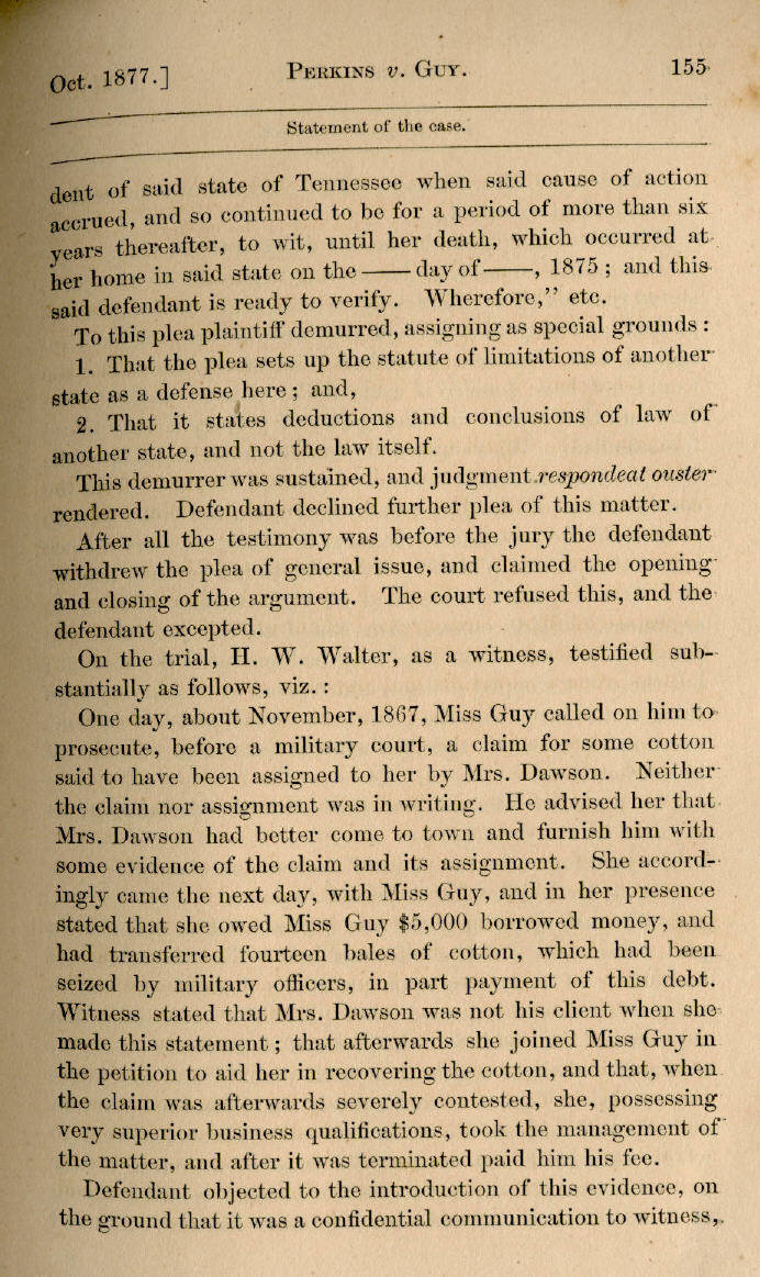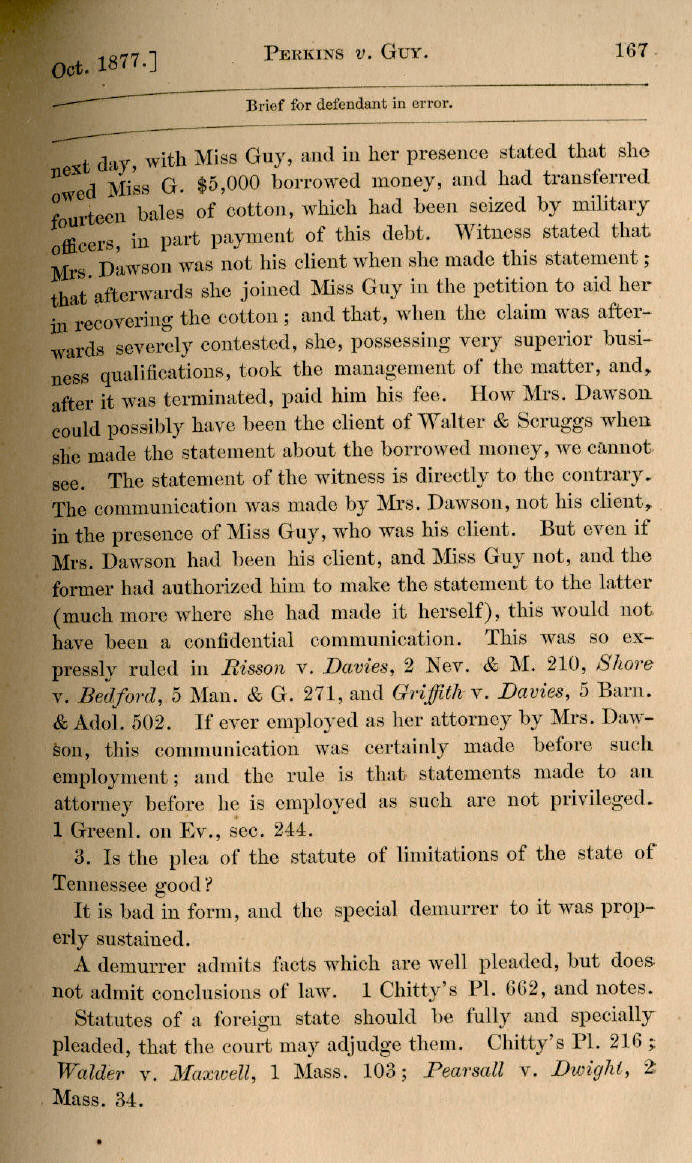 | Thomas F. Perkins, Administrator, etc., v. Ella M. Guy 153, 154, 155, 156, 157, 158, 159, 160, 161, 162, 163, 164, 165, 166, 167, 168, 169, 170, 171, 172, 173, 174, 175, 176, 177, 178, 179, 180, 181, 182, 183, 184 |