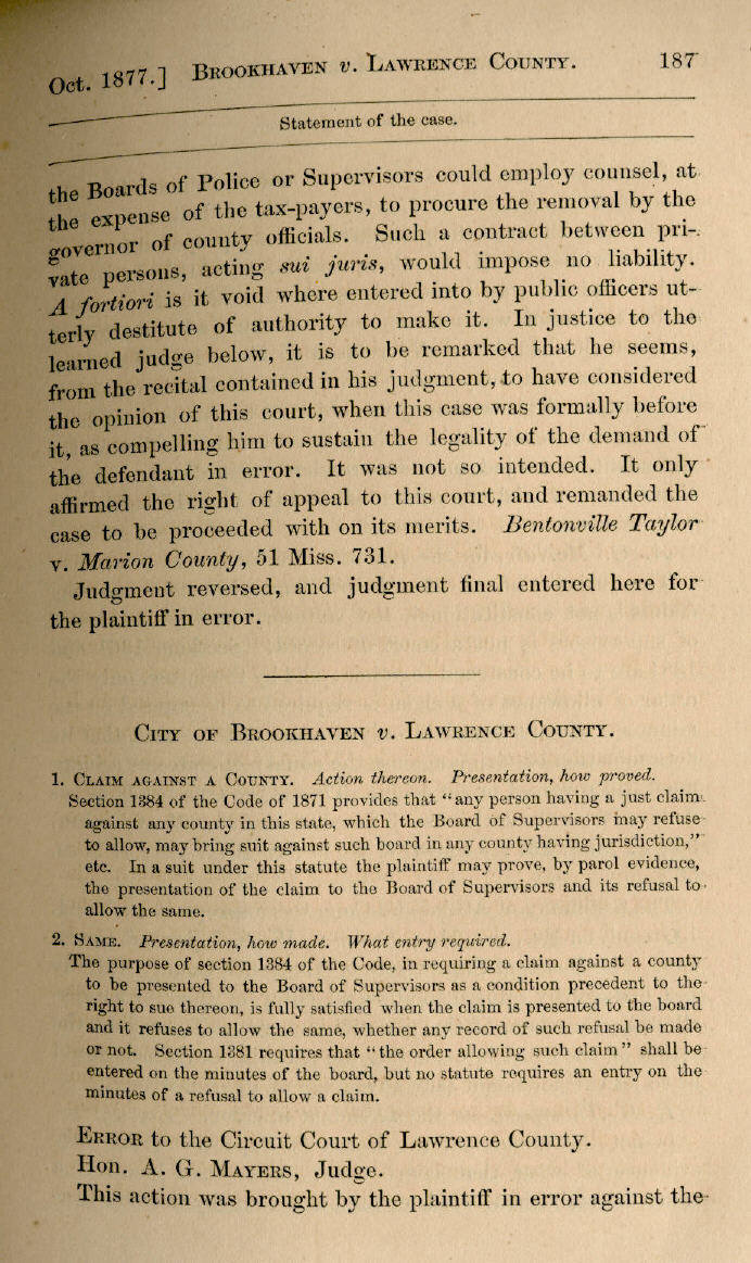 | City of Brookhaven v. Lawrence County 187, 188, 189, 190 |