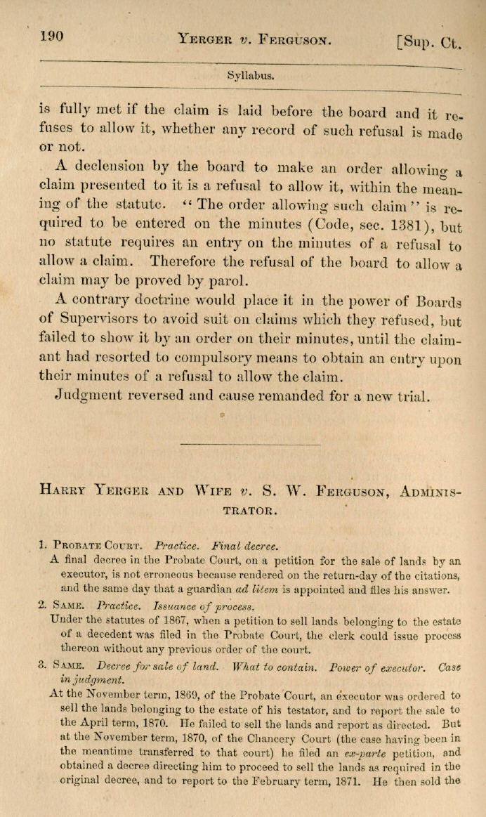| Harry Yerger and Wife v. S. W. Ferguson, Administrator 190, 191, 192, 193, 194, 195, 196, 197, 198 |