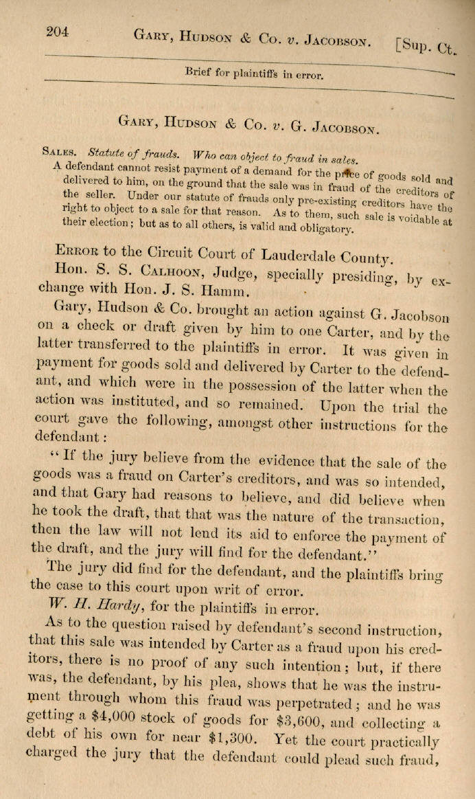 | Gary, Hudson & Co. v. G. Jacobson 204, 205, 206, 207, 208 |