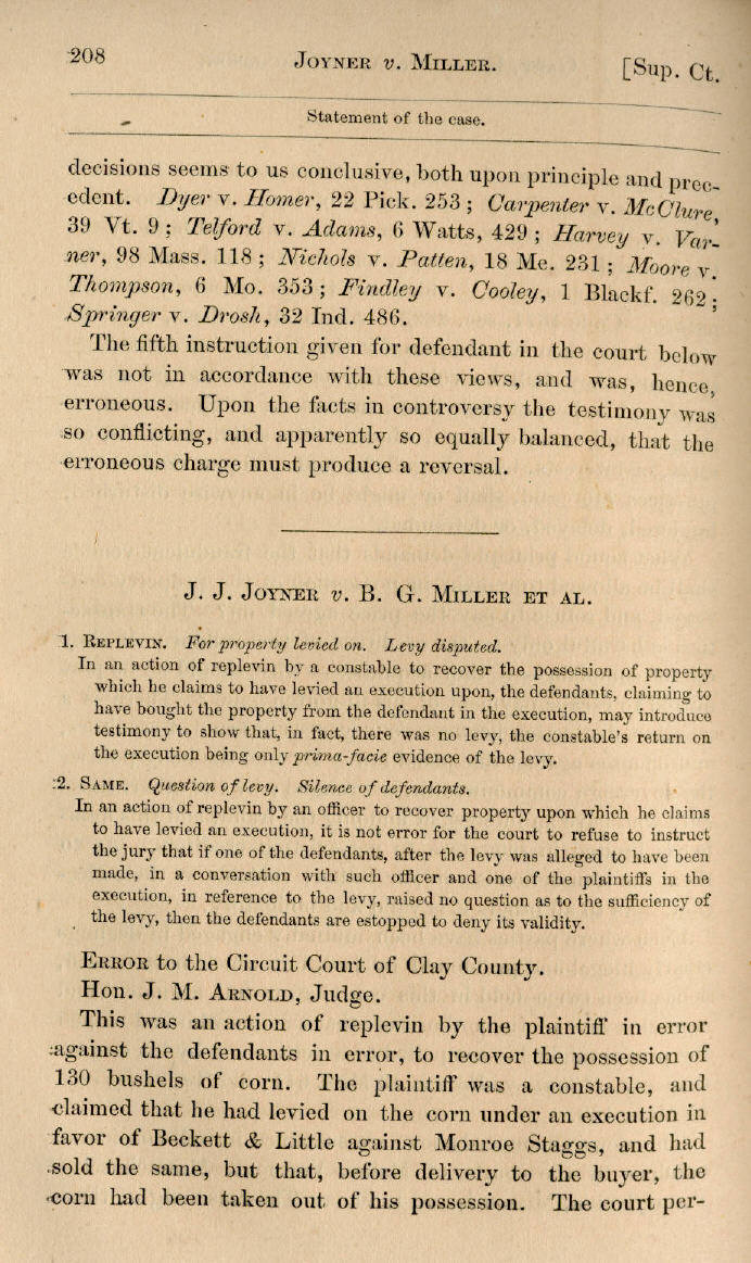 | J. J. Joyner v. B. G. Miller et al. 208, 209, 210, 211 |