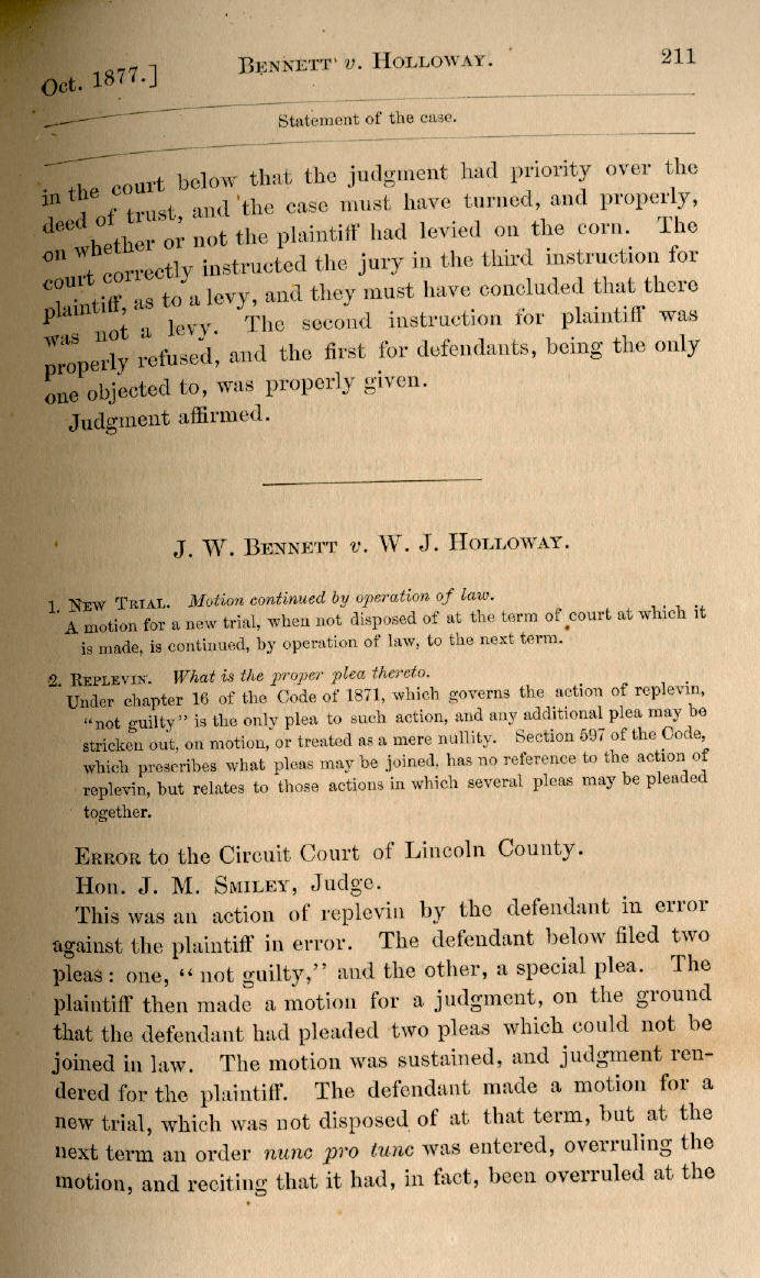 | J. W. Bennett v. W. J. Holloway 211, 212, 213 |