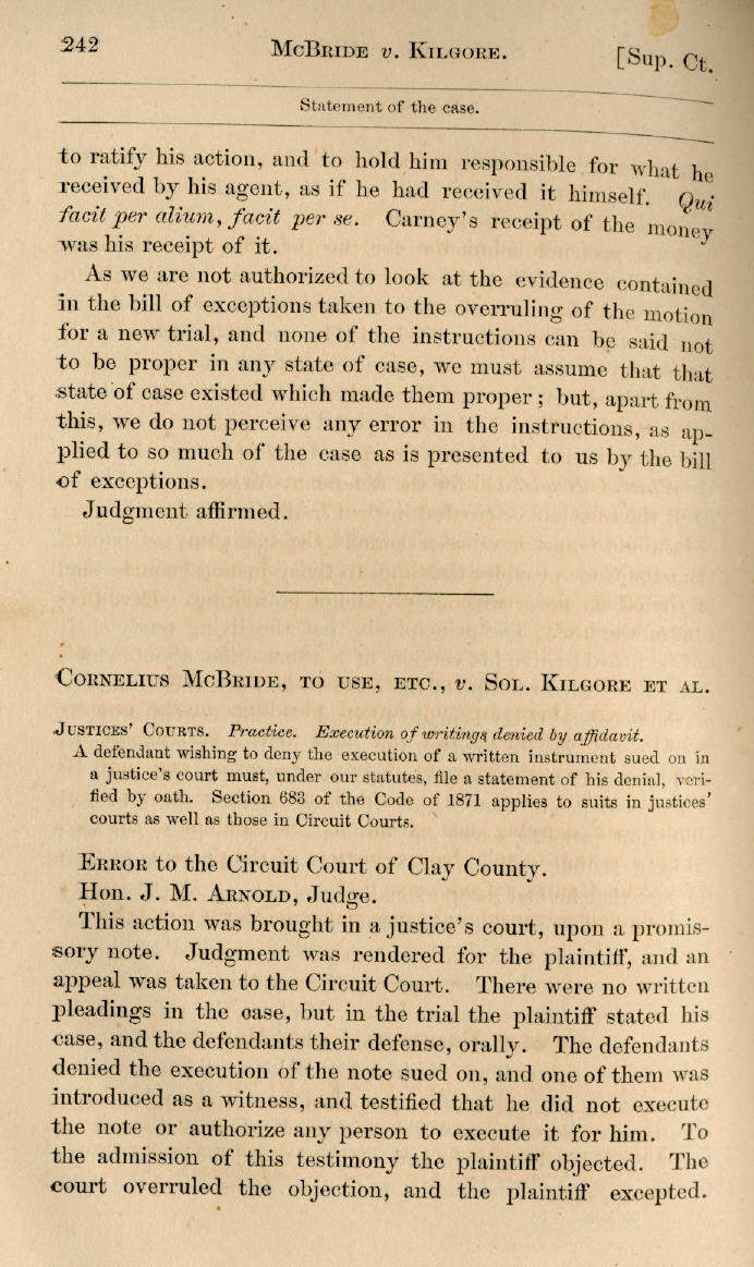 | Cornelius McBride, to use, etc., v. Sol. Kilgore et al. 242, 243 |