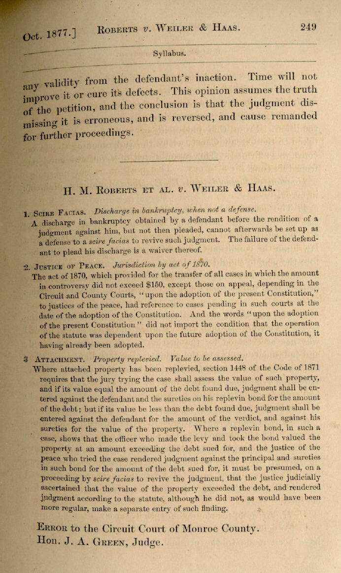 | H. M. Roberts et al. v. Weiler & Haas 249, 250, 251, 252, 253 |
