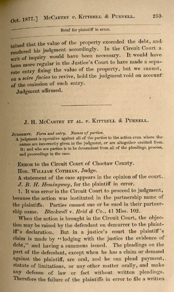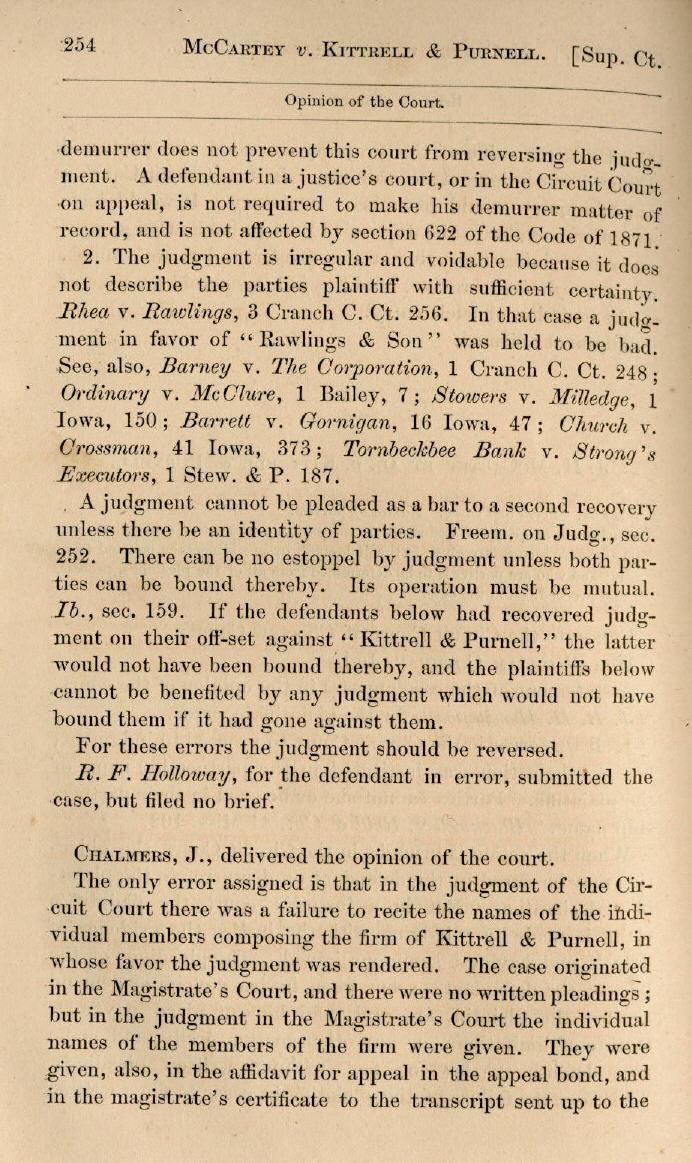 | J. H. McCartey et al. v. Kittrell & Purnell 253, 254, 255 |