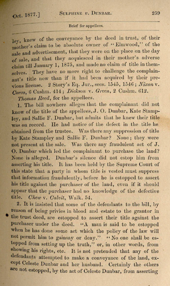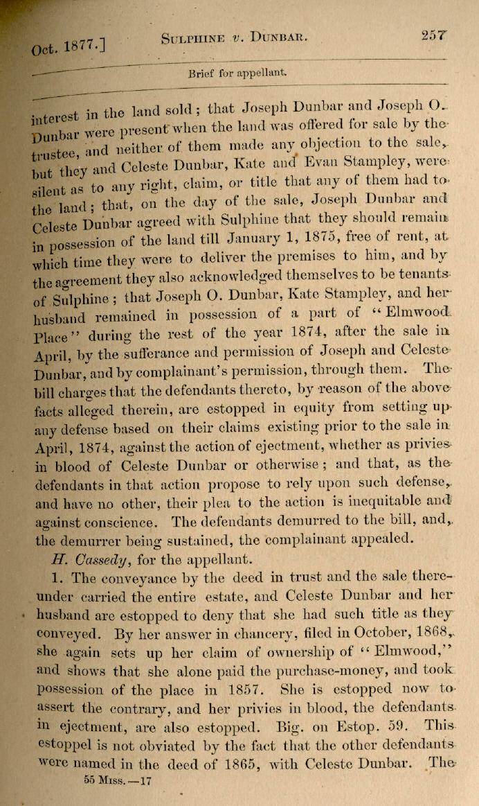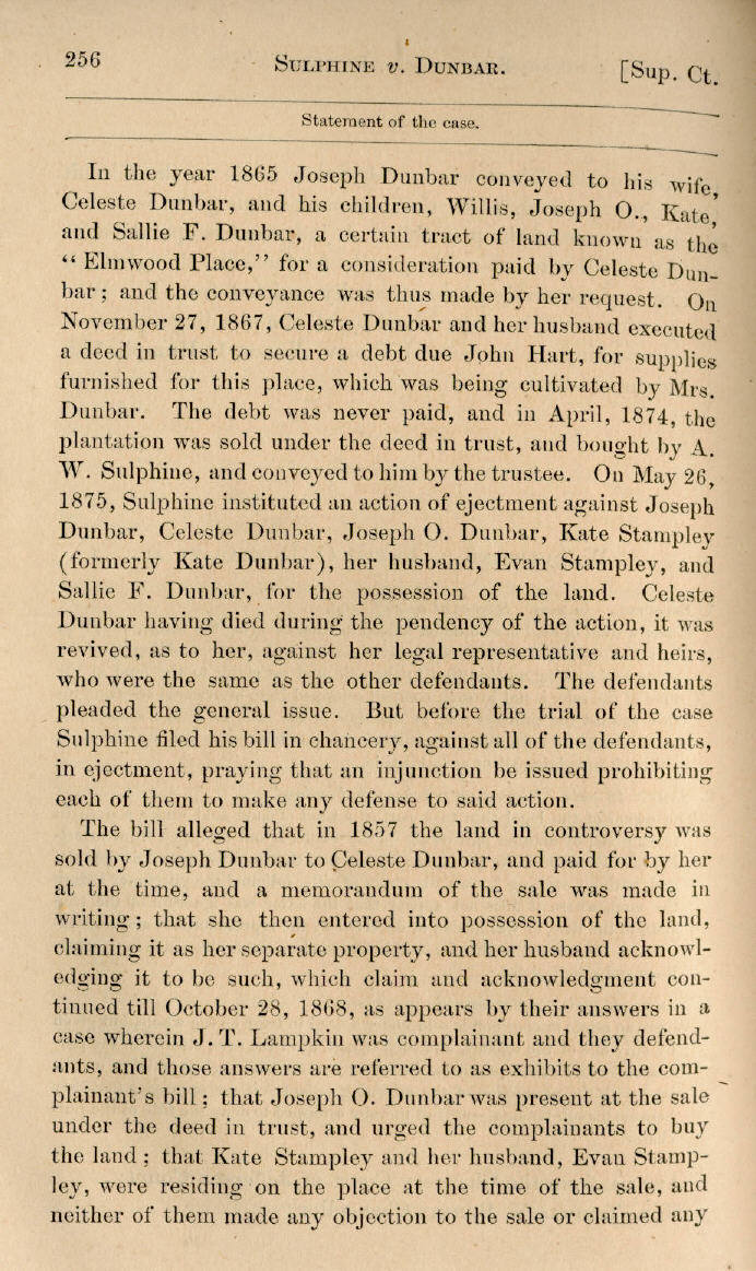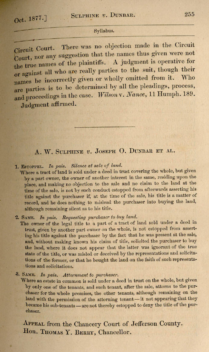 | A. W. Sulphine v. Joseph O. Dunbar et al. 255, 256, 257, 258, 259, 260, 261 |