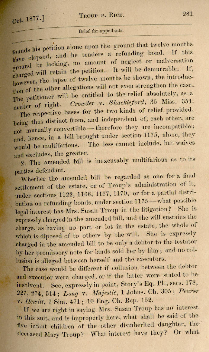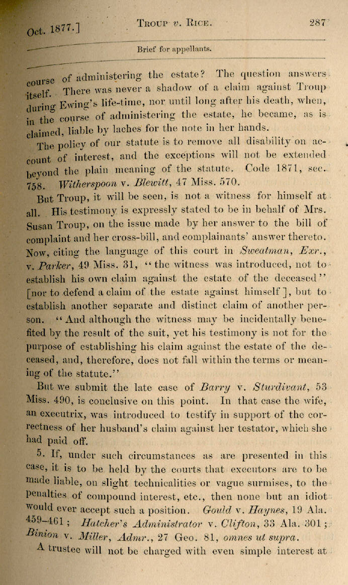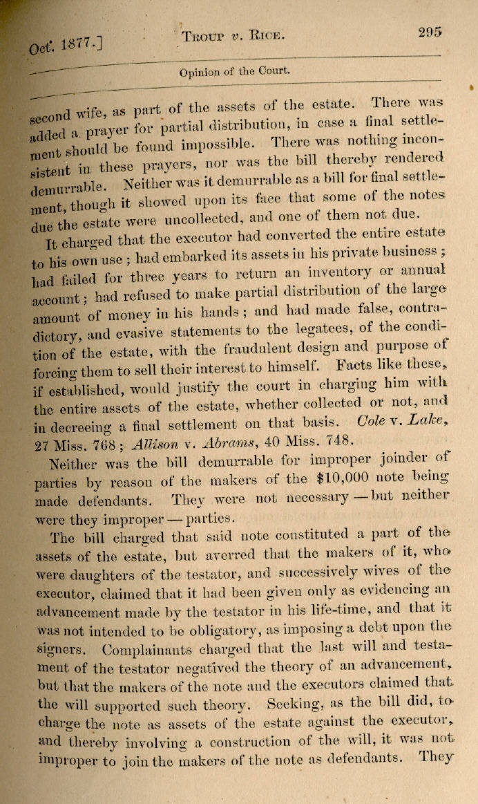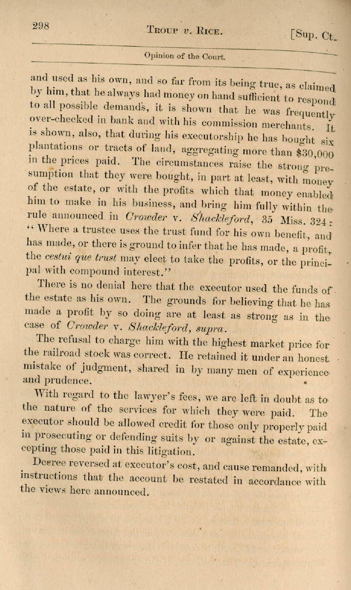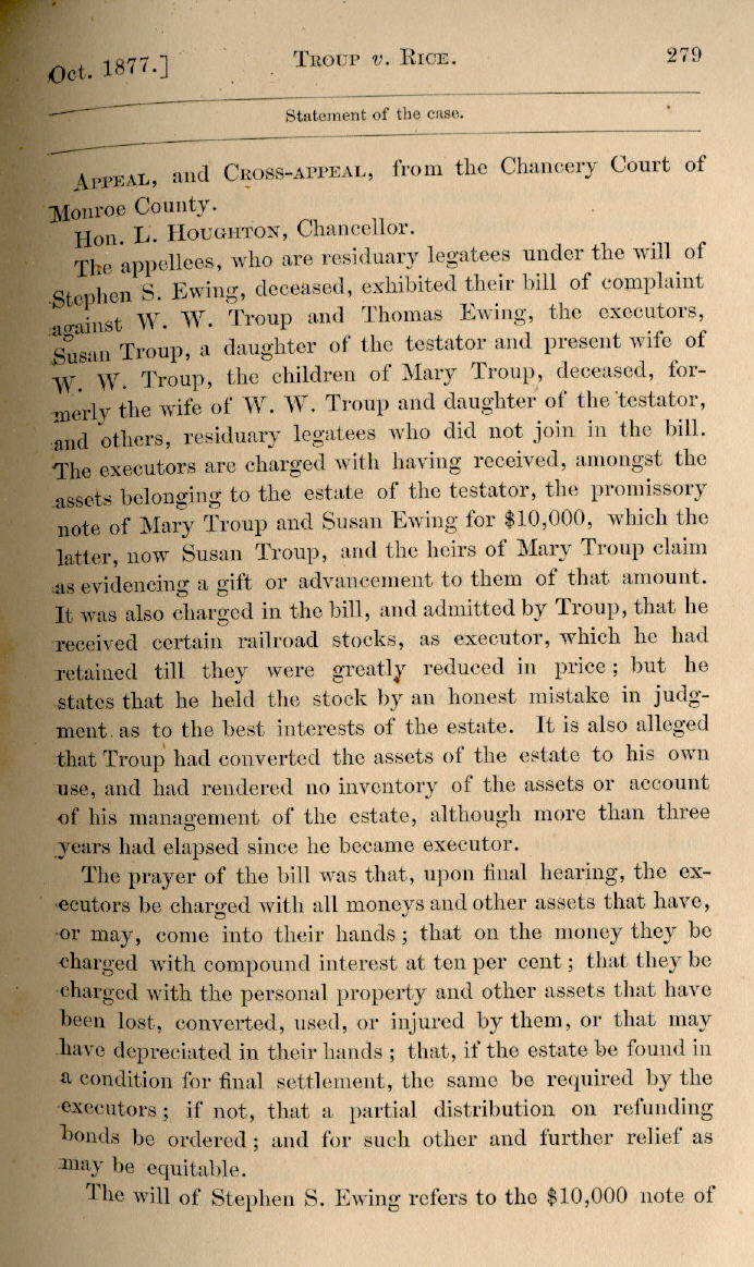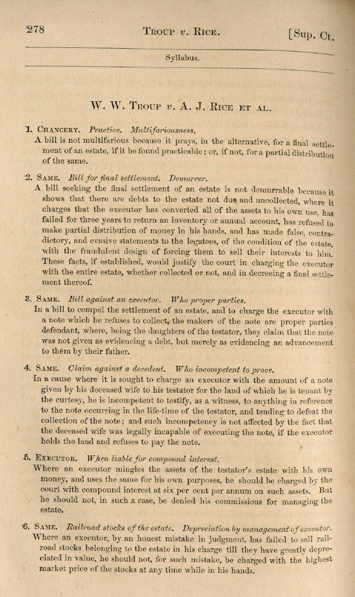 | W. W. Troup v. A. J. Rice et al. 278, 279, 280, 281, 282, 283, 284, 285, 286, 287, 288, 289, 290, 291, 292, 293, 294, 295, 296, 297, 298 |