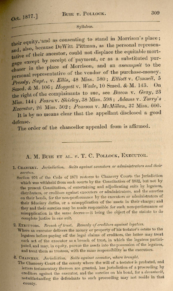 | A. M. Buie et al. v. T. C. Pollock, Executor 309, 310, 311, 312, 313, 314, 315 |