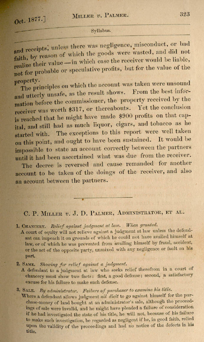 | C. P. Miller v. J. D. Palmer, Administrator, et al. 323, 324, 325, 326, 327, 328, 329, 330, 331, 332, 333, 334, 335, 336, 337, 338, 339, 340, 341, 342, 343, 344 |