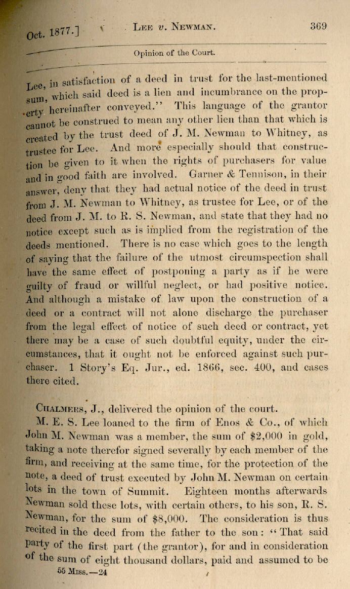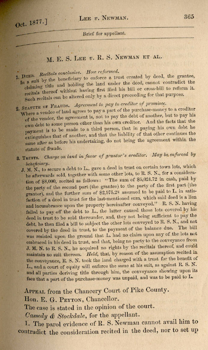 | M. E. S. Lee v. R. S. Newman et al. 365, 366, 367, 368, 369, 370, 371, 372, 373, 374, 375, 376 |