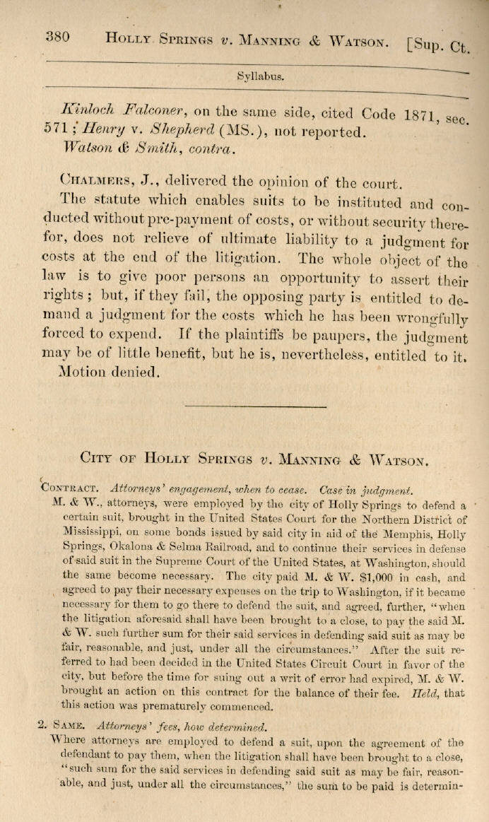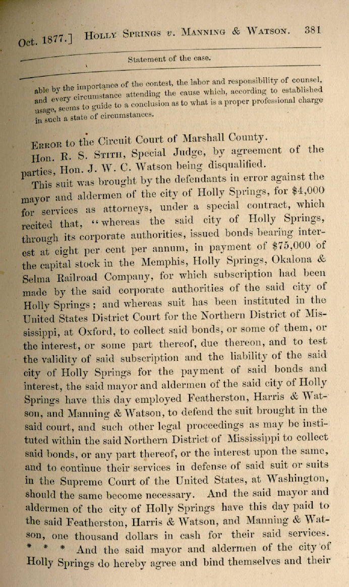 | City of Holly Springs v. Manning & Watson 380, 381, 382, 383, 384, 385, 386, 387, 388, 389 |