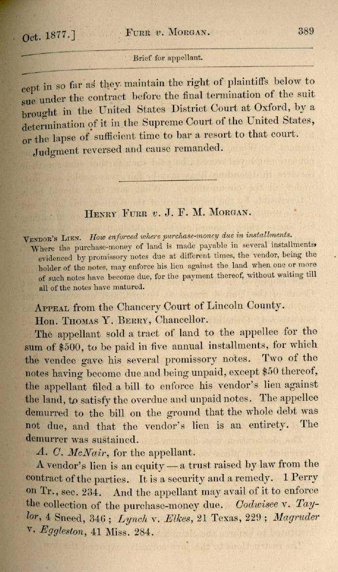 | Henry Furr v. J. F. M. Morgan 389, 390 |