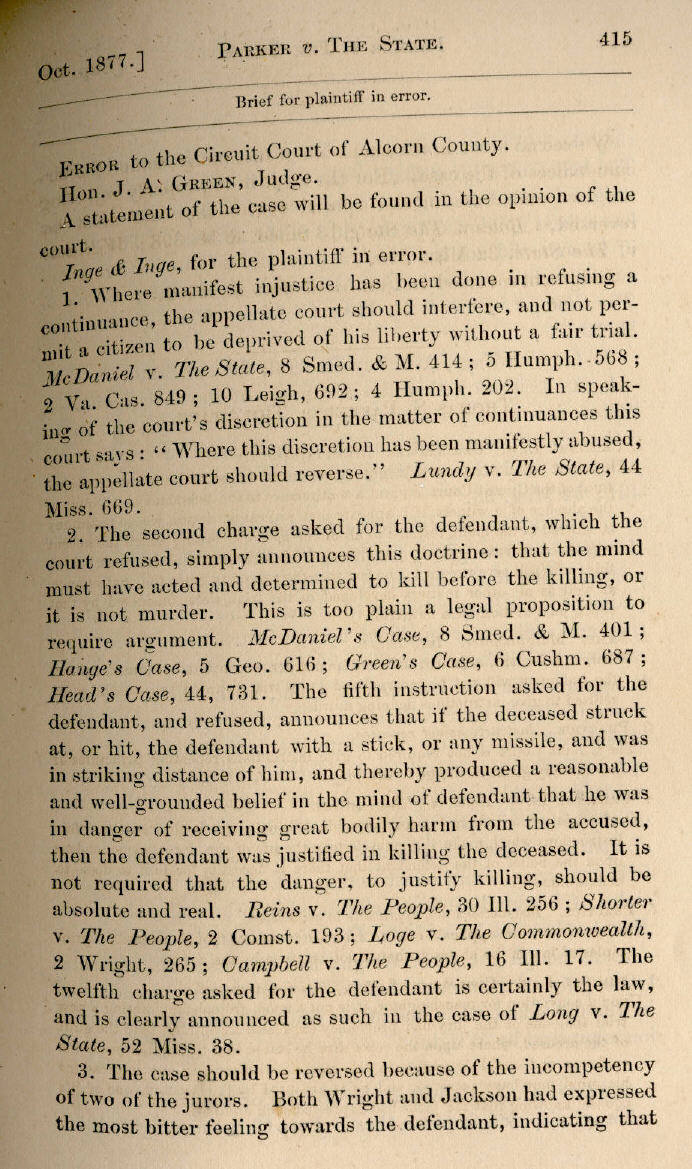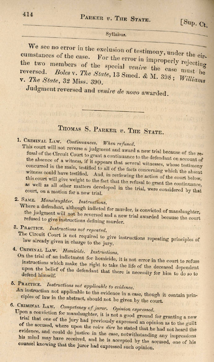| Thomas S. Parker v. The State 414, 415, 416, 417, 418, 419, 420 |