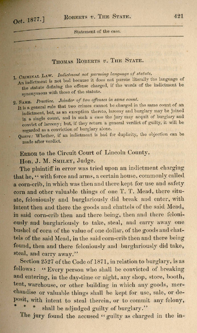 | Thomas Roberts v. The State 421, 422, 423, 424 |