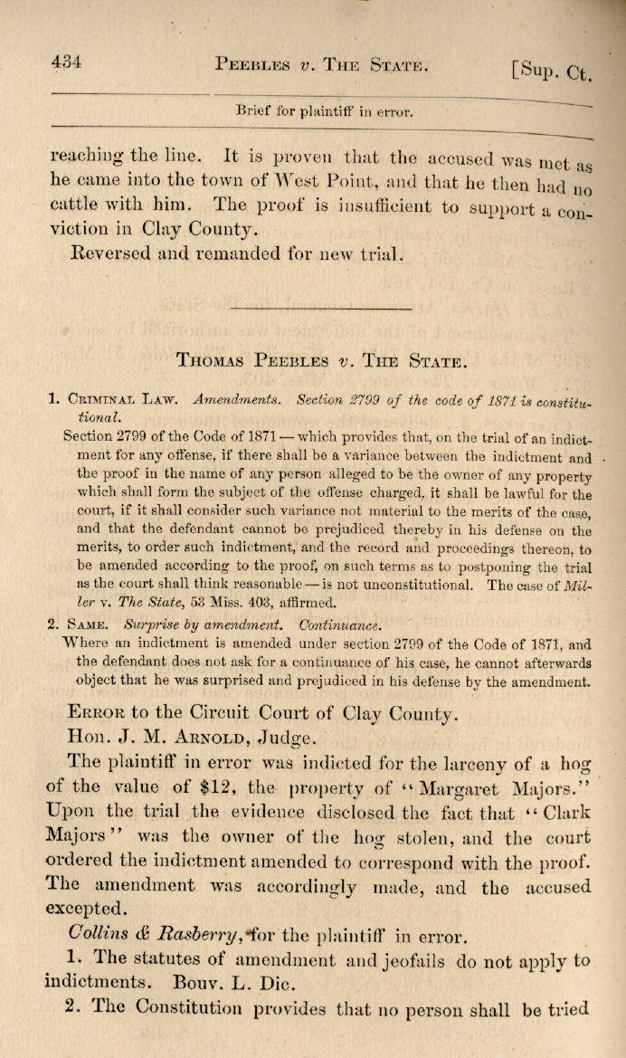 | Thomas Peebles v. The State 434, 435 |