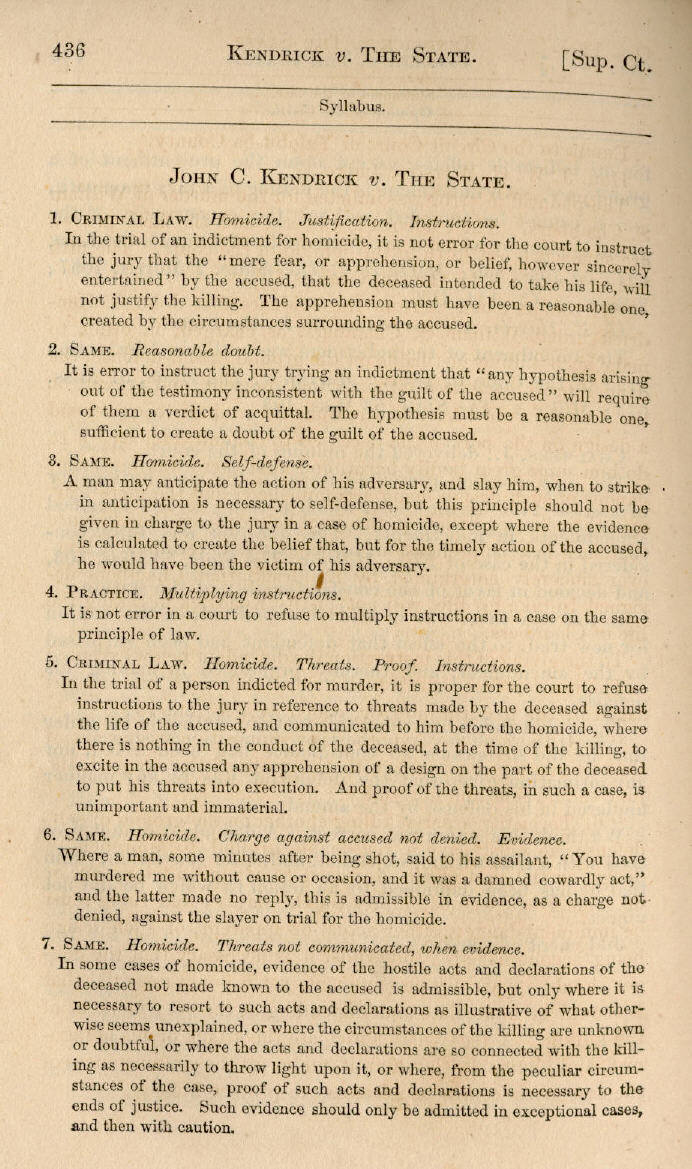 | John C. Kendrick v. The State 436, 437, 438, 439, 440, 441, 442, 443, 444, 445, 446, 447, 448, 449, 450, 451, 452 |