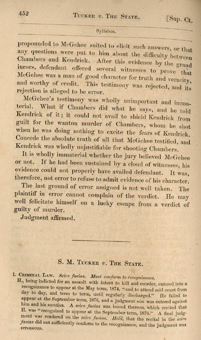 | S. M. Tucker v. The State 452, 453, 454 |