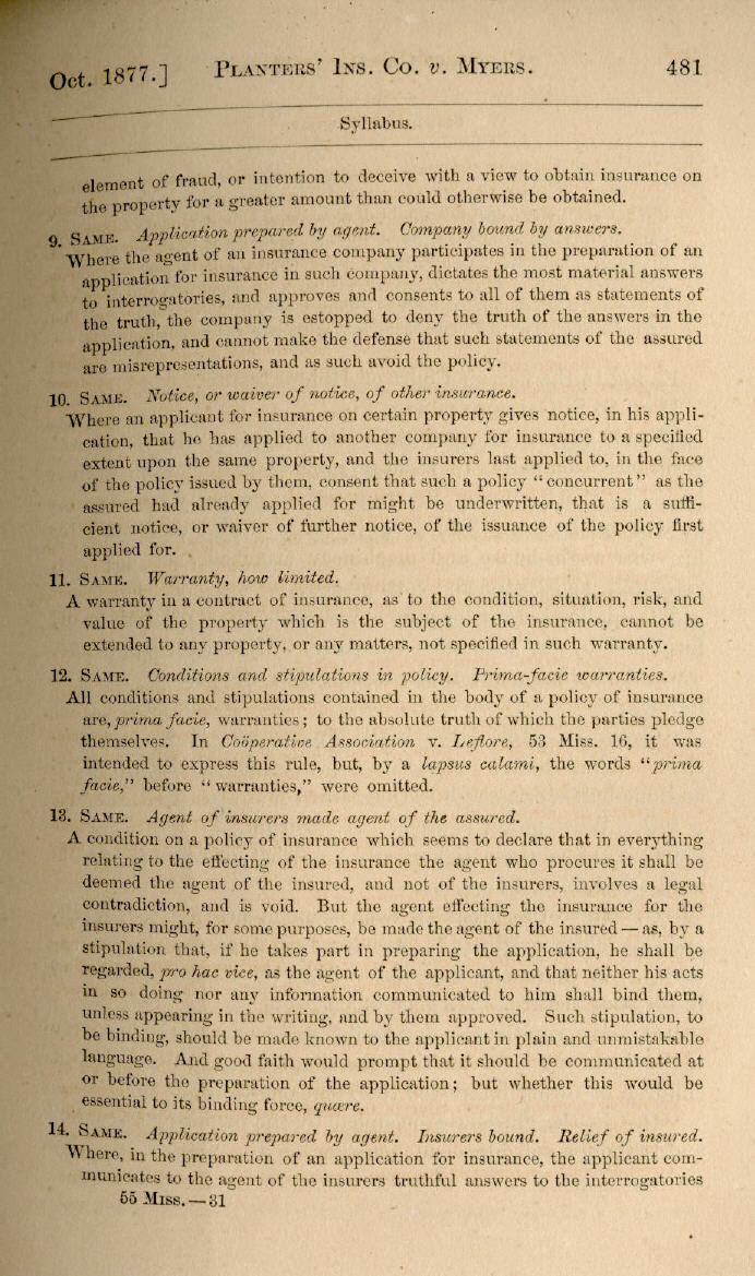 | Planters' Insurance Company v. W. G. Myers 479, 480, 481, 482, 483, 484, 485, 486, 487, 488, 489, 490, 491, 492, 493, 494, 495, 496, 497, 498, 499, 500, 501, 502, 503, 504, 505, 506, 507, 508, 509, 510, 511, 512 |
