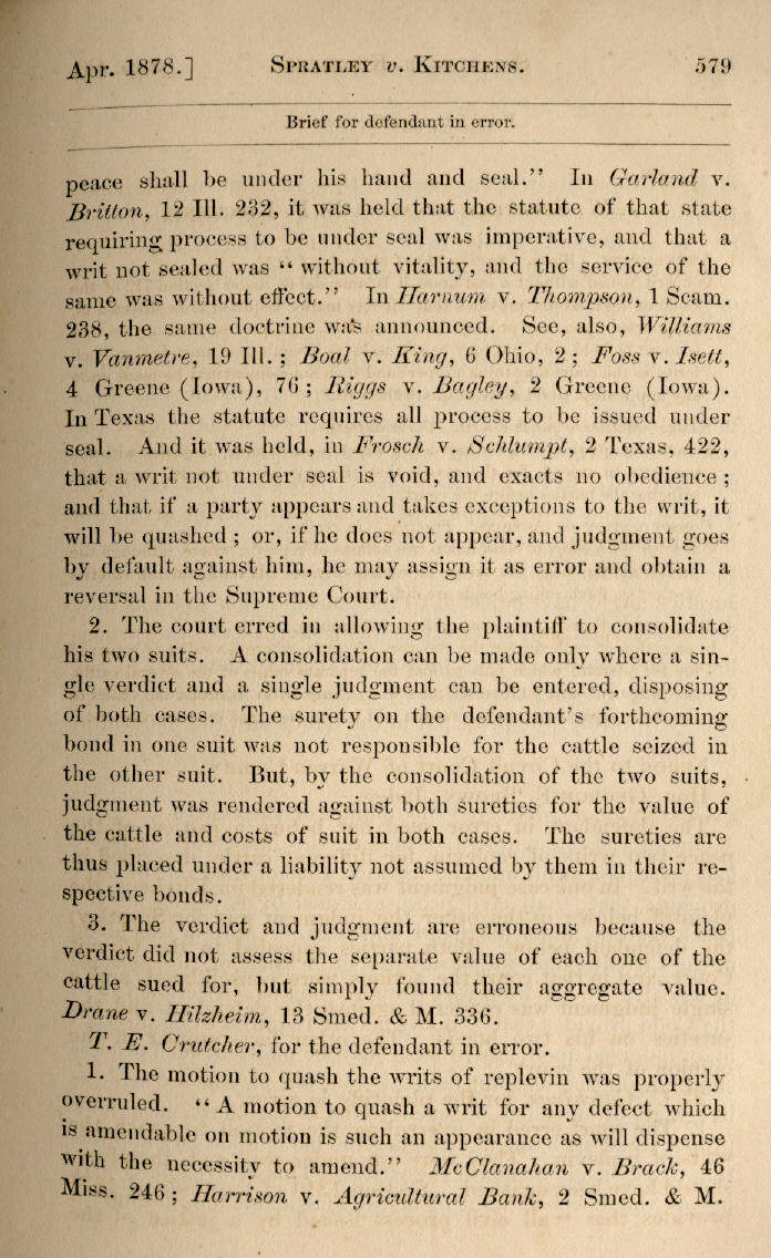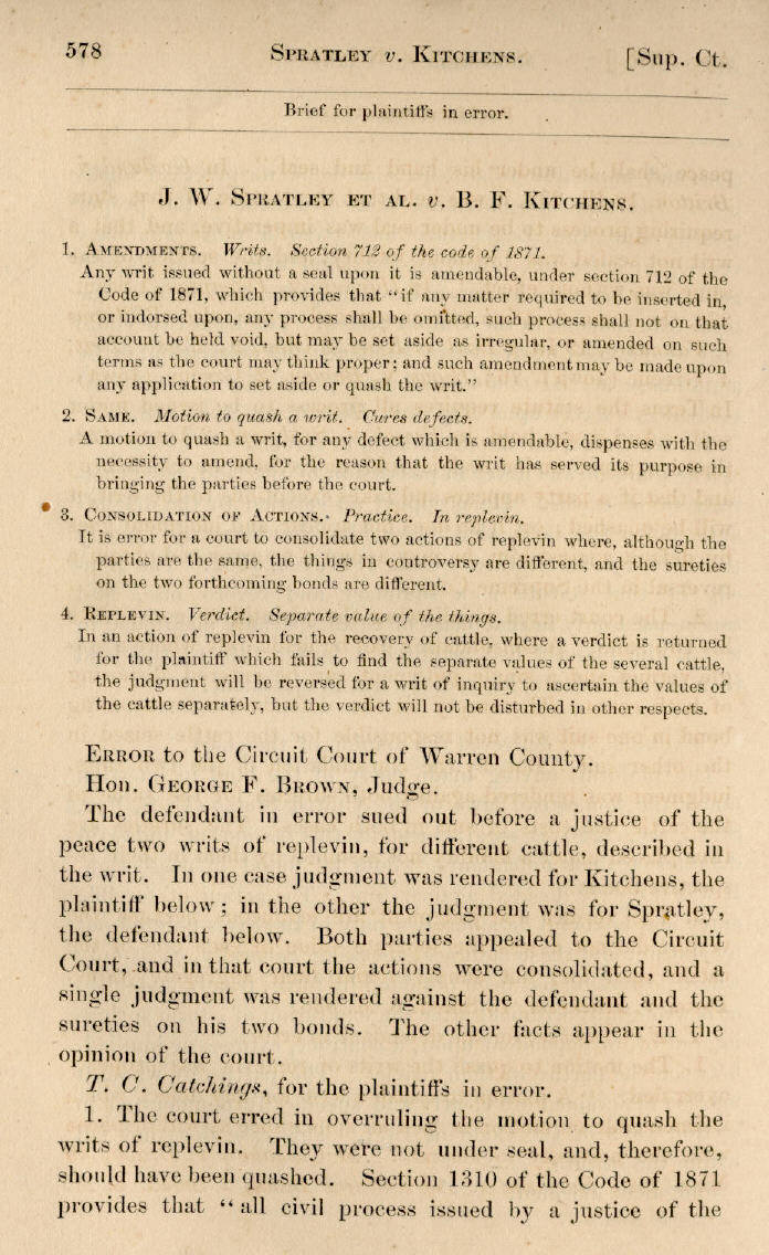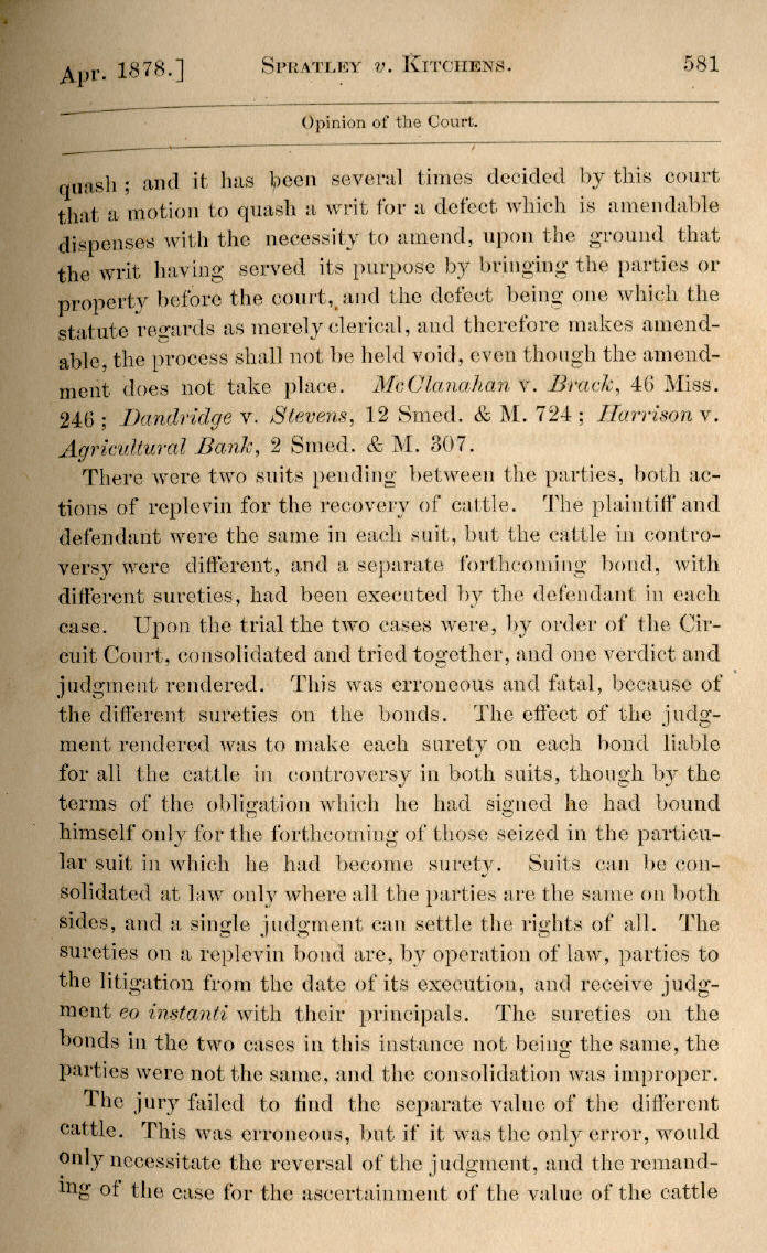 | J. W. Spratley et al. v. B. F. Kitchens 578, 579, 580, 581, 582 |