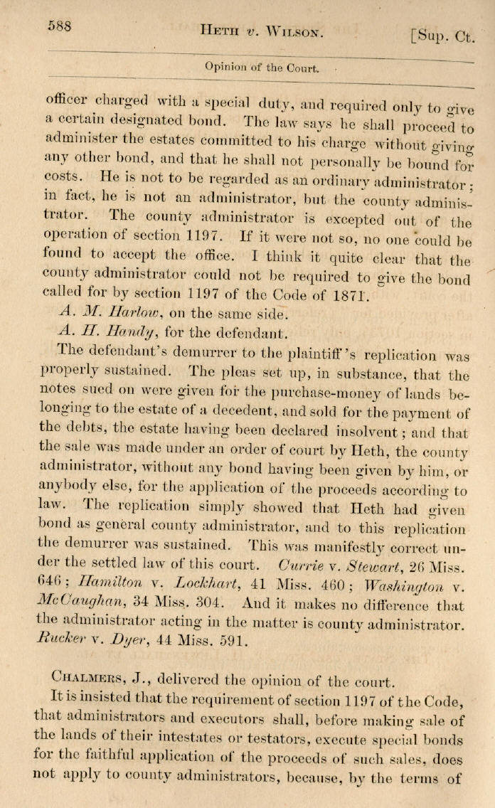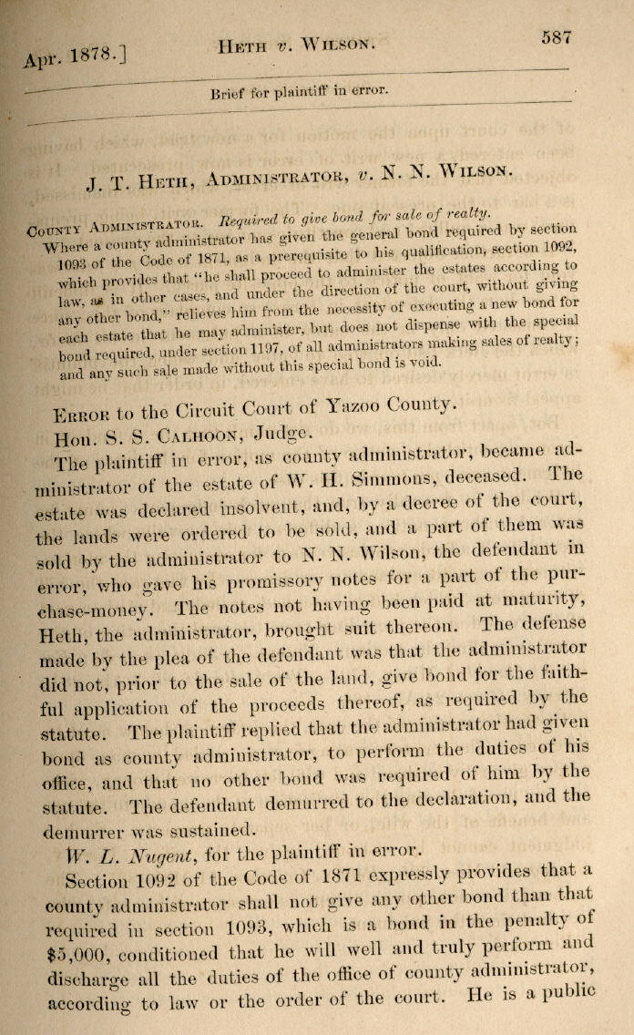 | J. T. Heth, Administrator, v. N. N. Wilson 587, 588, 589 |