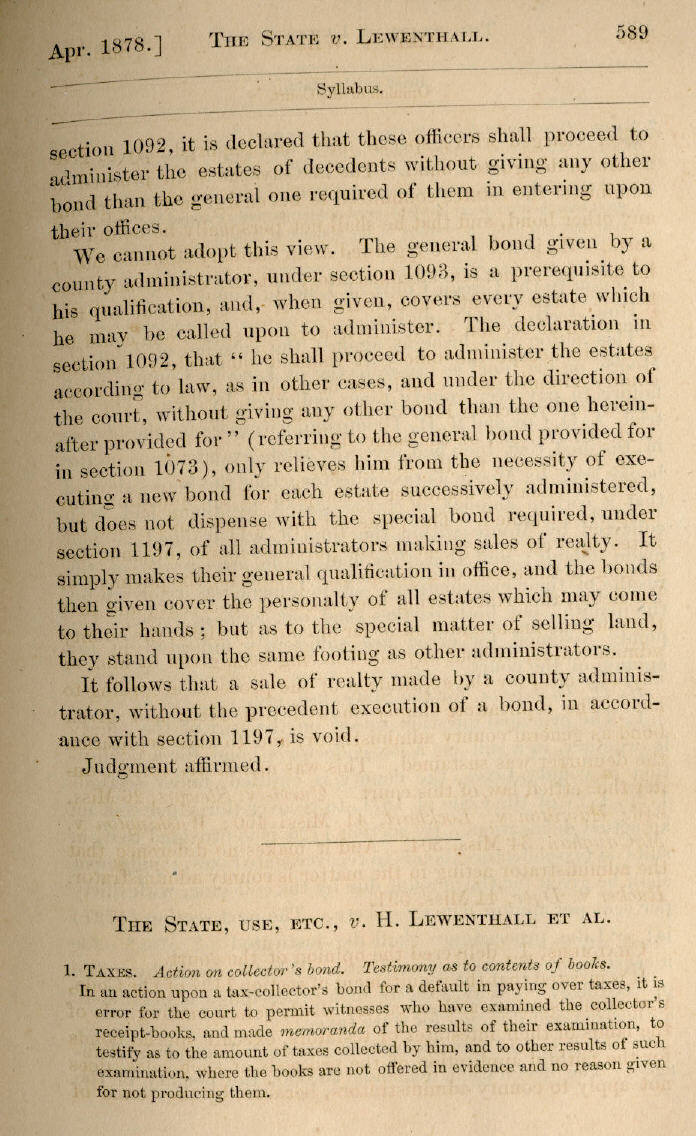 | The State, Use, etc., v. H. Lewenthall et al. 589, 590, 591, 592 |