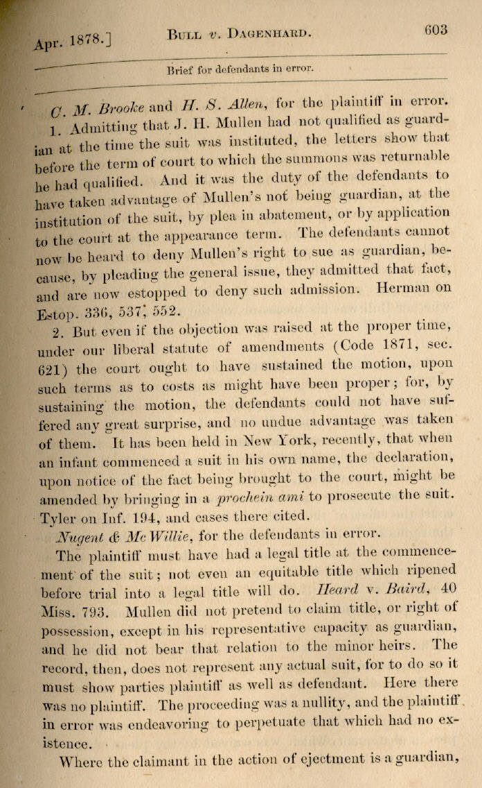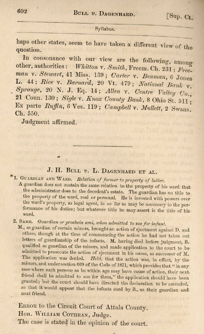 | J. H. Bull v. Dagenhard et al. 602, 603, 604, 605, 606 |