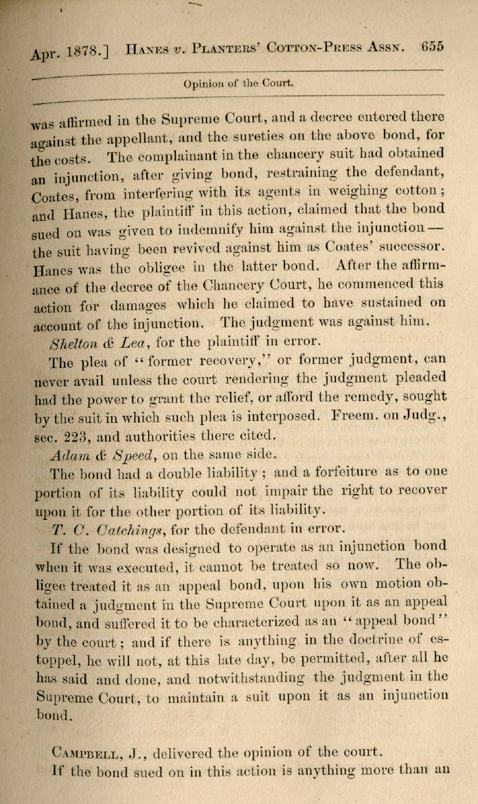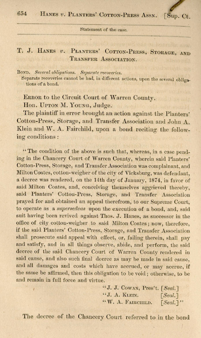 | T. J. Hanes v. Planters' Cotton-Press, Storage, and Transfer Association 654, 655, 656 |