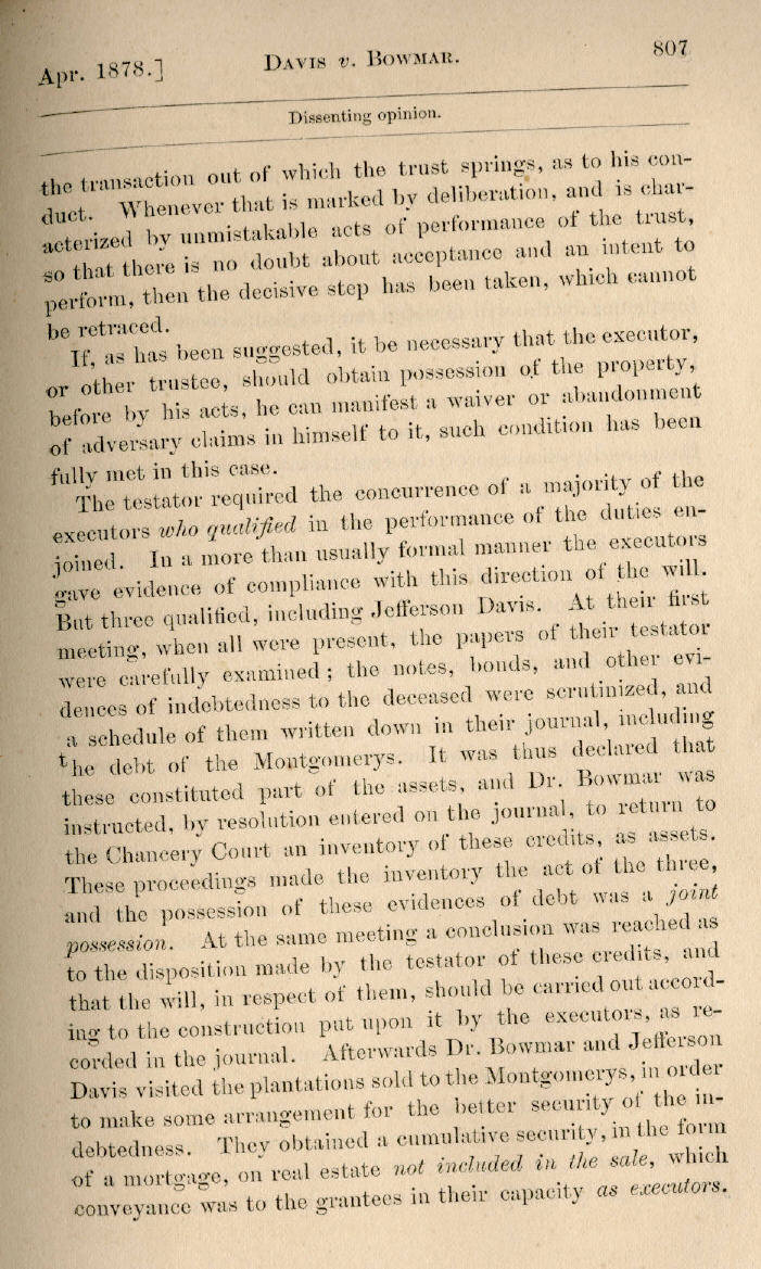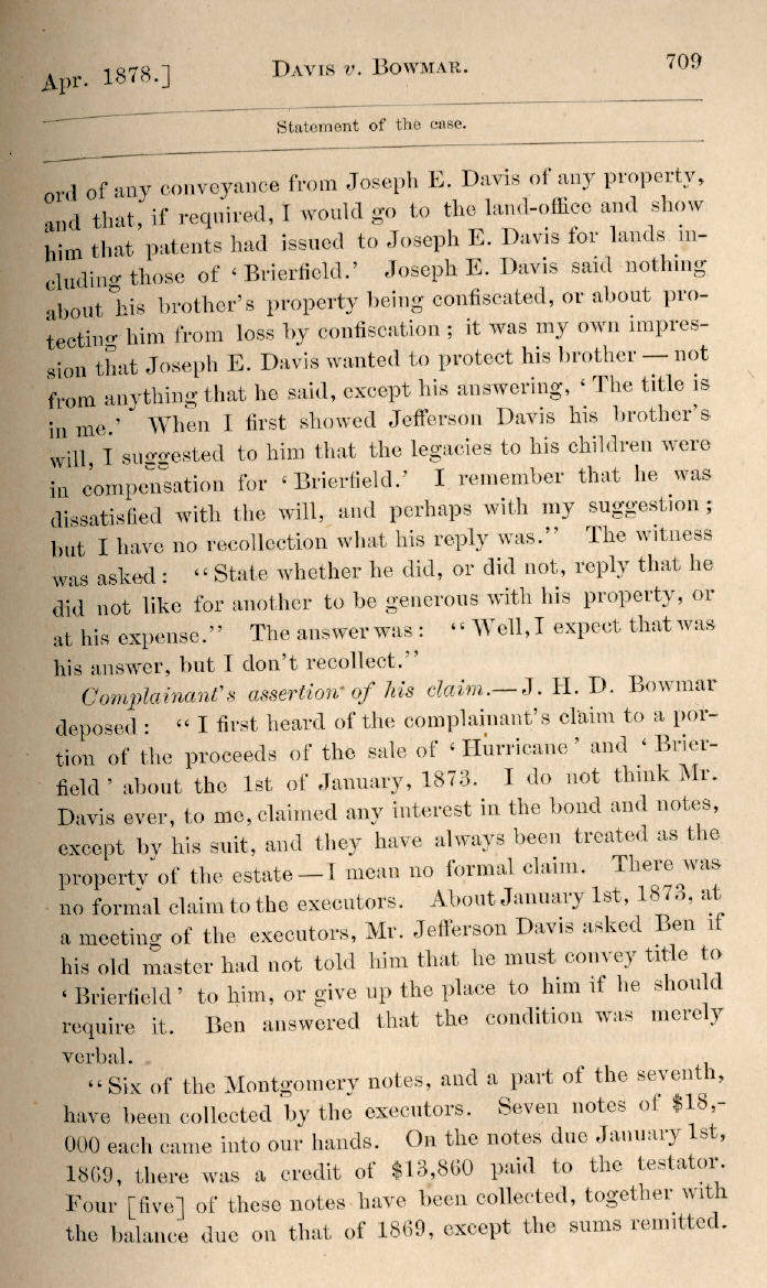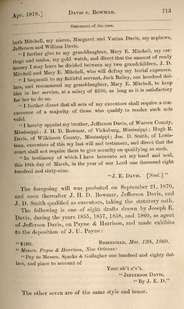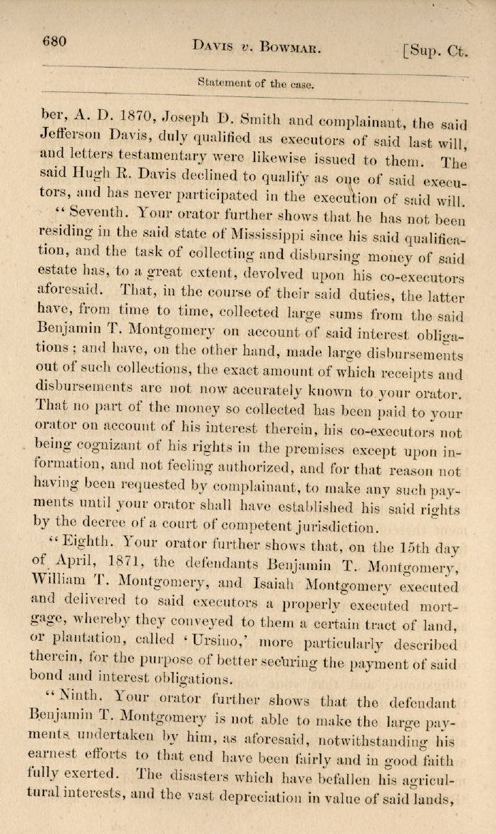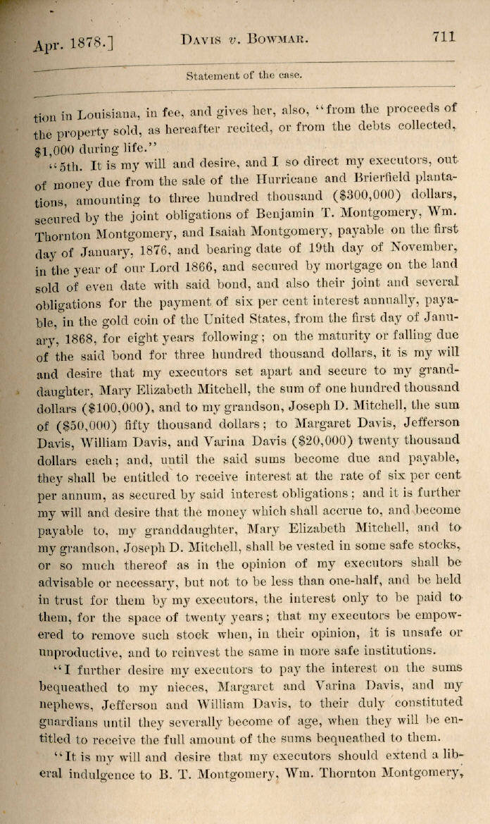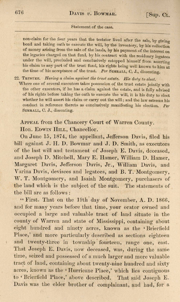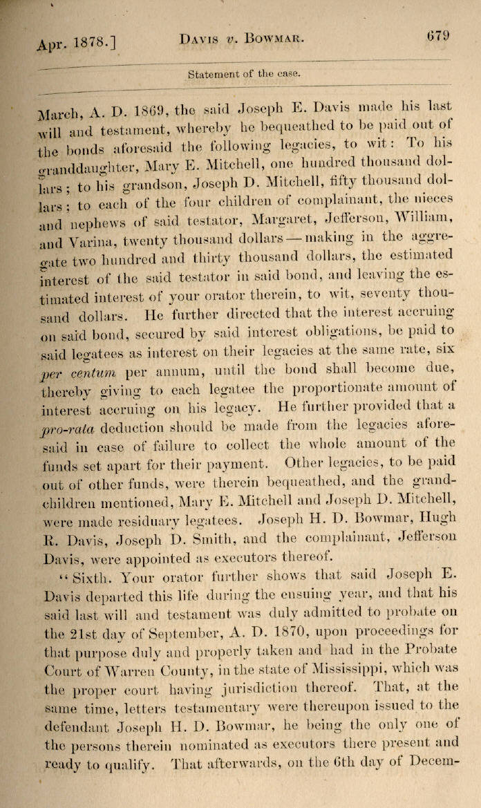 | Jefferson Davis v. J. H. D. Bowmar, Executor, et al. 671, 672, 673, 674, 675, 676, 677, 678, 679, 680, 681, 682, 683, 684, 685, 686, 687, 688, 689, 690, 691, 692, 693, 694, 695, 696, 697, 698, 699, 700, 701, 702, 703, 704, 705, 706, 707, 708, 709, 710, 711, 712, 713, 714, 715, 716, 717, 718, 719, 720, 721, 722, 723, 724, 725, 726, 727, 728, 729, 730, 731, 732, 733, 734, 735, 736, 737, 738, 739, 740, 741, 742, 743, 744, 745, 746, 747, 748, 749, 750, 751, 752, 753, 754, 755, 756, 757, 758, 759, 760, 761, 762, 763, 764, 765, 766, 767, 768, 769, 770, 771, 772, 773, 774, 775, 776, 777, 778, 779, 780, 781, 782, 783, 784, 785, 786, 787, 788, 789, 790, 791, 792, 793, 794, 795, 796, 797, 798, 799, 800, 801, 802, 803, 804, 805, 806, 807, 808, 809, 810, 811, 812, 813, 814 |
