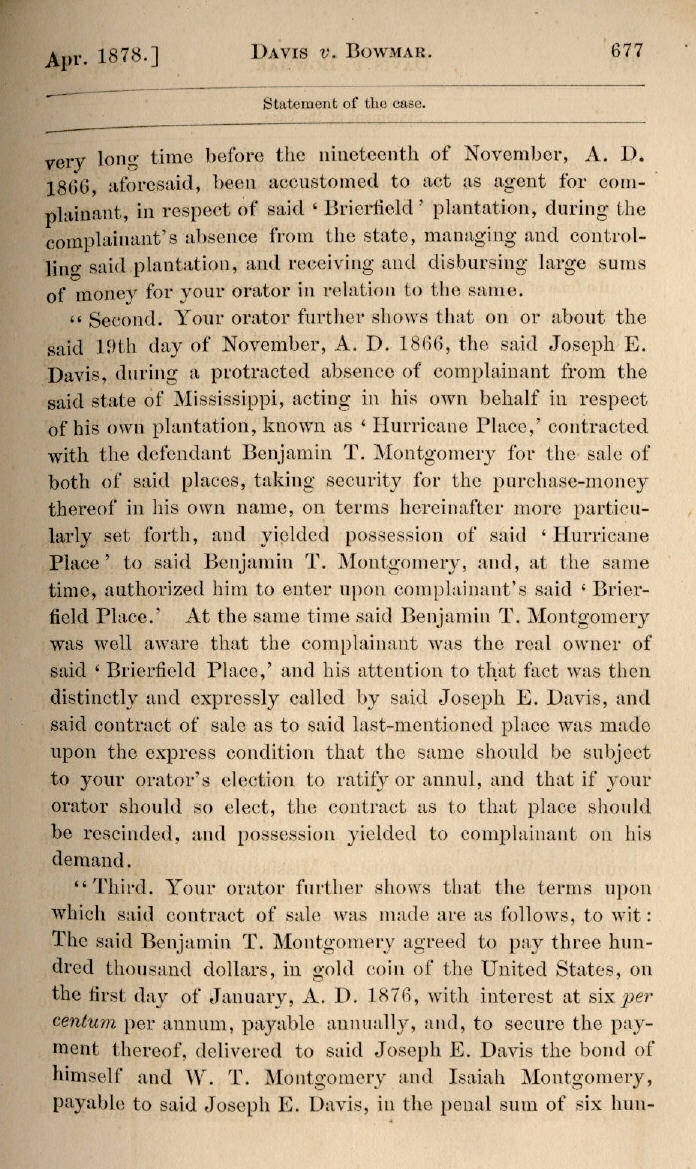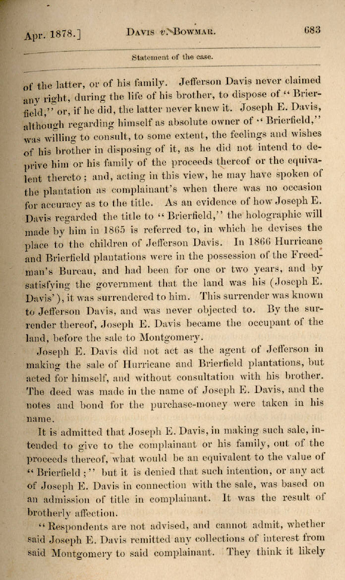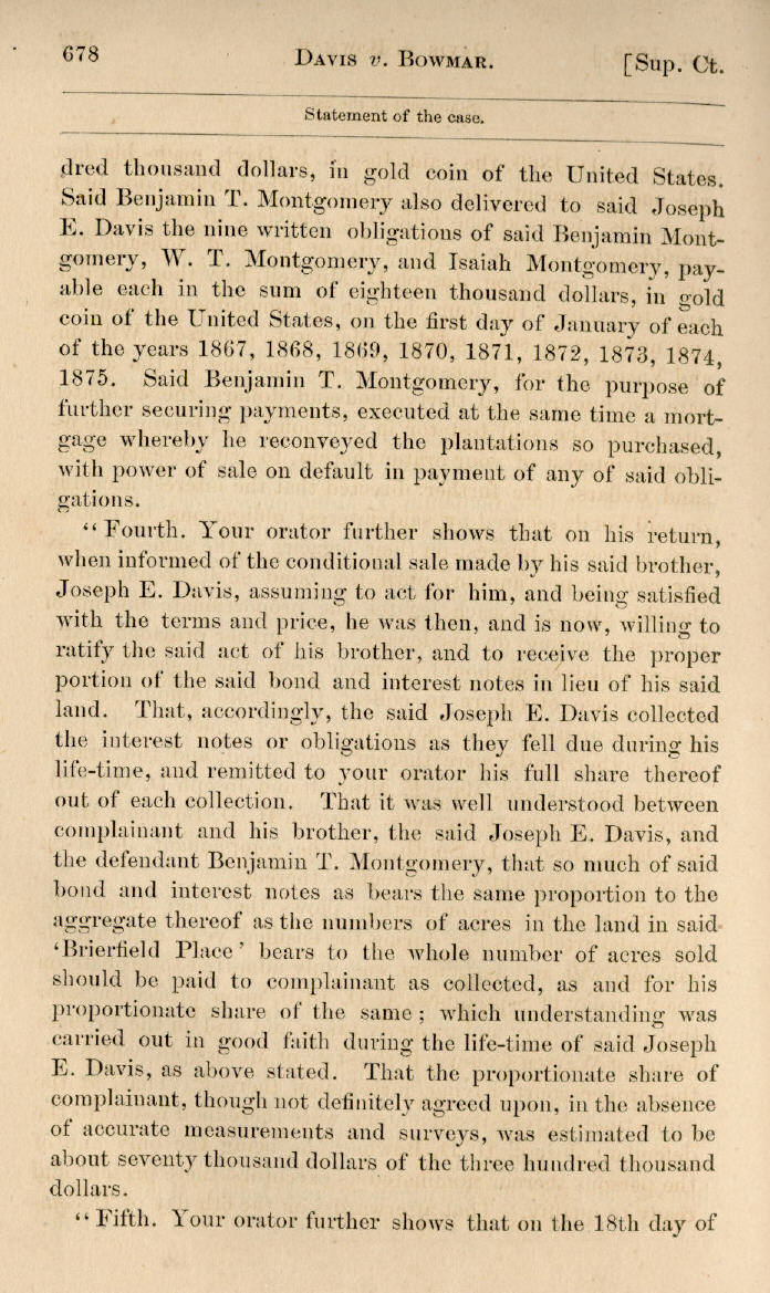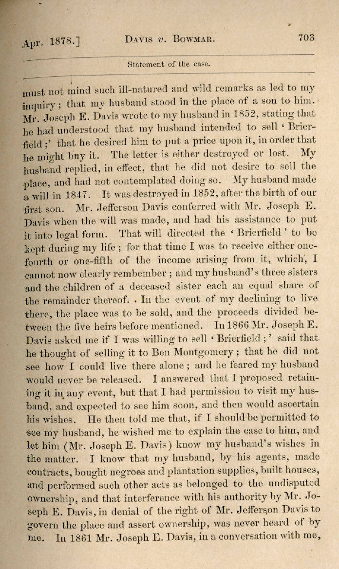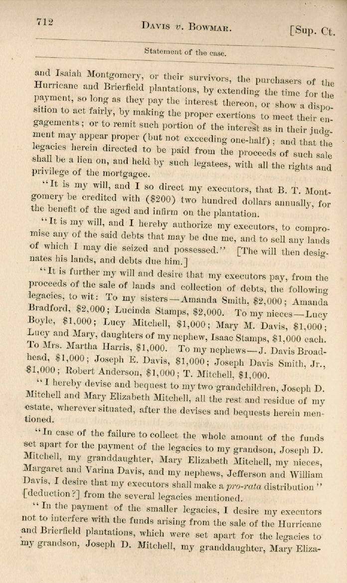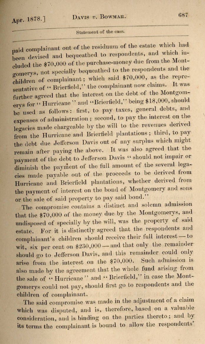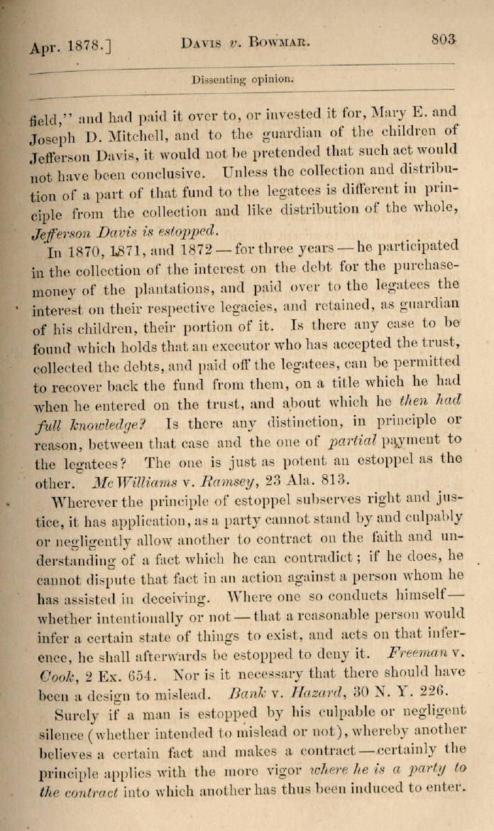 | Jefferson Davis v. J. H. D. Bowmar, Executor, et al. 671, 672, 673, 674, 675, 676, 677, 678, 679, 680, 681, 682, 683, 684, 685, 686, 687, 688, 689, 690, 691, 692, 693, 694, 695, 696, 697, 698, 699, 700, 701, 702, 703, 704, 705, 706, 707, 708, 709, 710, 711, 712, 713, 714, 715, 716, 717, 718, 719, 720, 721, 722, 723, 724, 725, 726, 727, 728, 729, 730, 731, 732, 733, 734, 735, 736, 737, 738, 739, 740, 741, 742, 743, 744, 745, 746, 747, 748, 749, 750, 751, 752, 753, 754, 755, 756, 757, 758, 759, 760, 761, 762, 763, 764, 765, 766, 767, 768, 769, 770, 771, 772, 773, 774, 775, 776, 777, 778, 779, 780, 781, 782, 783, 784, 785, 786, 787, 788, 789, 790, 791, 792, 793, 794, 795, 796, 797, 798, 799, 800, 801, 802, 803, 804, 805, 806, 807, 808, 809, 810, 811, 812, 813, 814 |