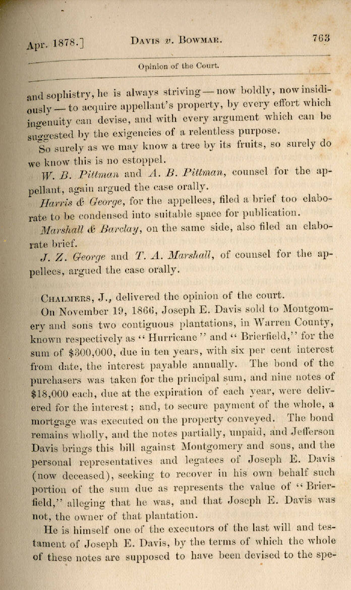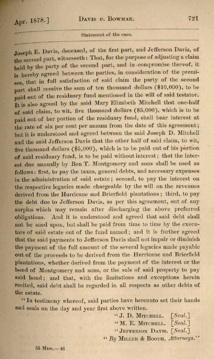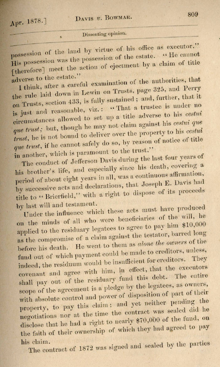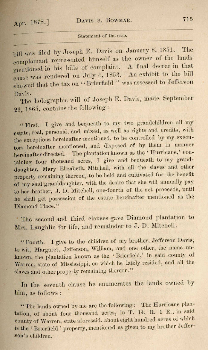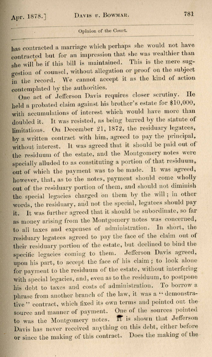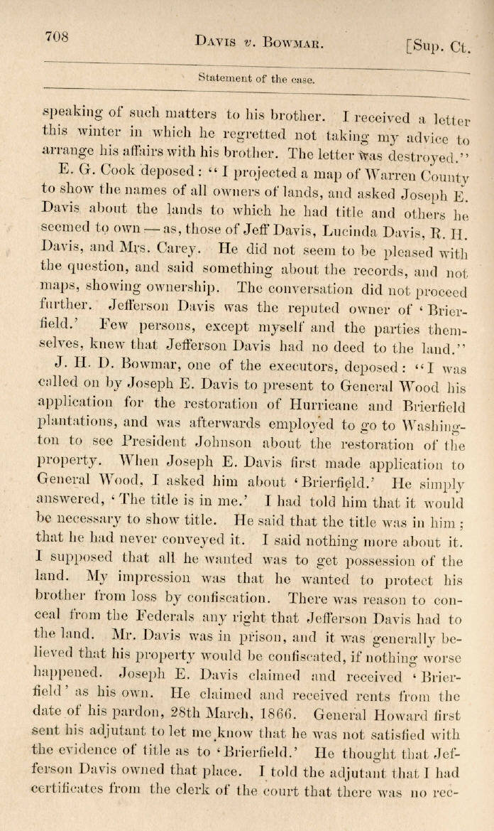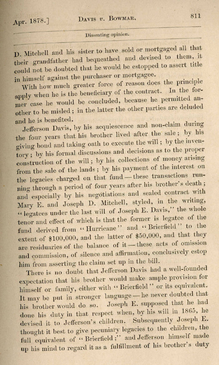 | Jefferson Davis v. J. H. D. Bowmar, Executor, et al. 671, 672, 673, 674, 675, 676, 677, 678, 679, 680, 681, 682, 683, 684, 685, 686, 687, 688, 689, 690, 691, 692, 693, 694, 695, 696, 697, 698, 699, 700, 701, 702, 703, 704, 705, 706, 707, 708, 709, 710, 711, 712, 713, 714, 715, 716, 717, 718, 719, 720, 721, 722, 723, 724, 725, 726, 727, 728, 729, 730, 731, 732, 733, 734, 735, 736, 737, 738, 739, 740, 741, 742, 743, 744, 745, 746, 747, 748, 749, 750, 751, 752, 753, 754, 755, 756, 757, 758, 759, 760, 761, 762, 763, 764, 765, 766, 767, 768, 769, 770, 771, 772, 773, 774, 775, 776, 777, 778, 779, 780, 781, 782, 783, 784, 785, 786, 787, 788, 789, 790, 791, 792, 793, 794, 795, 796, 797, 798, 799, 800, 801, 802, 803, 804, 805, 806, 807, 808, 809, 810, 811, 812, 813, 814 |