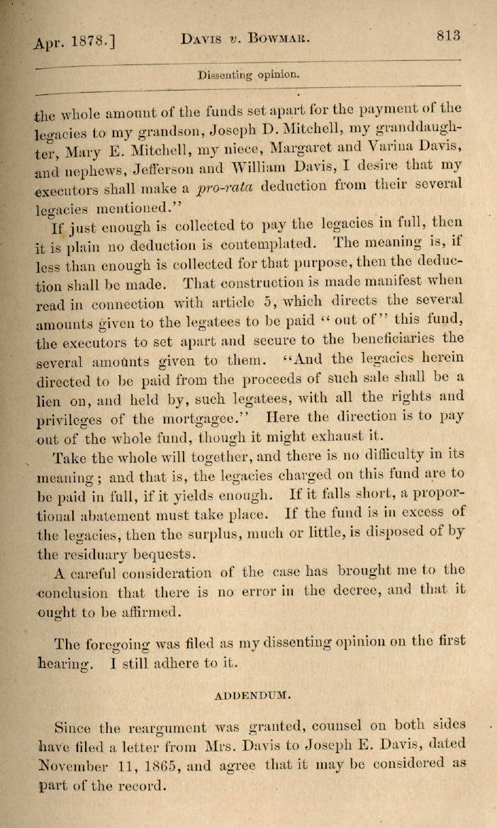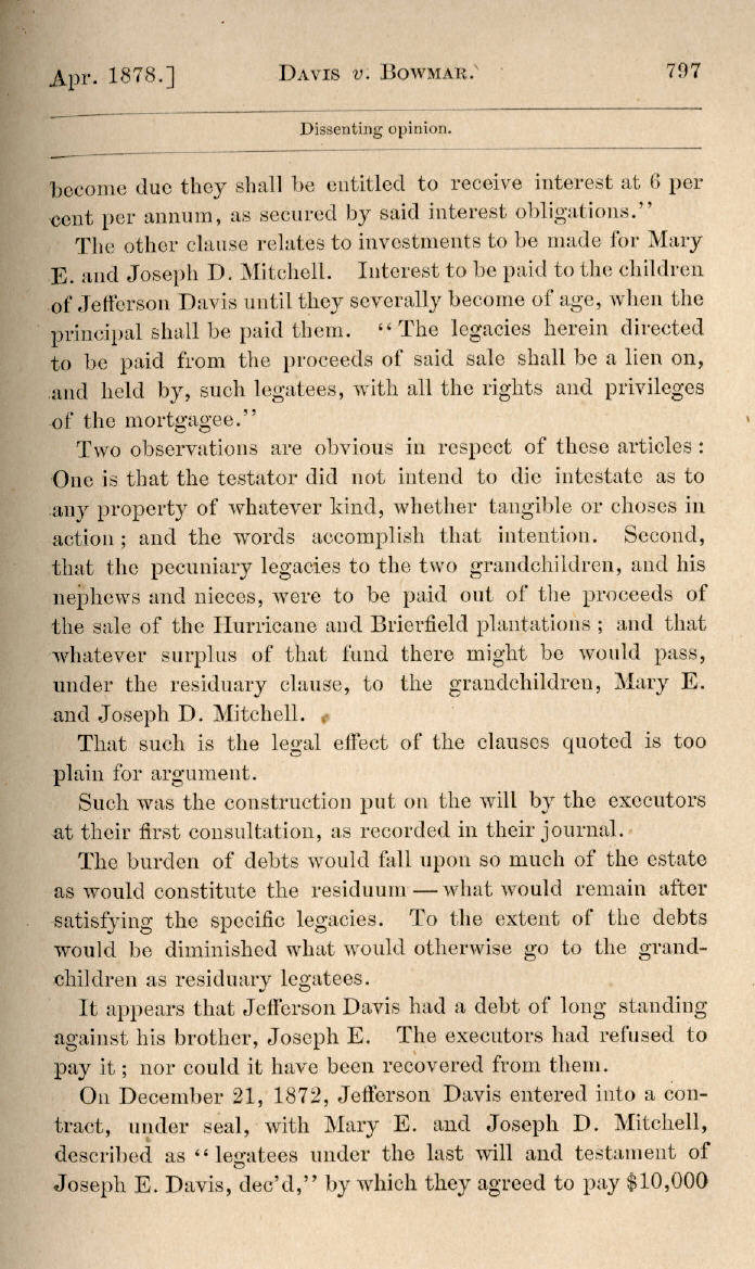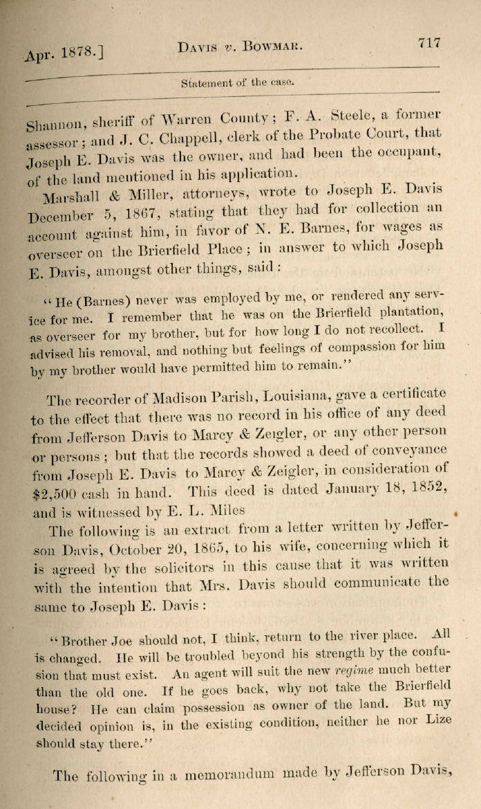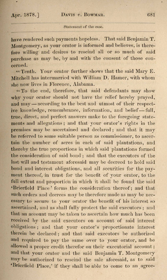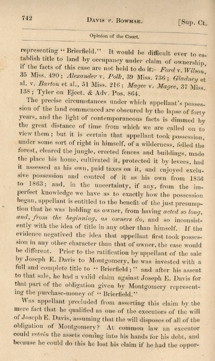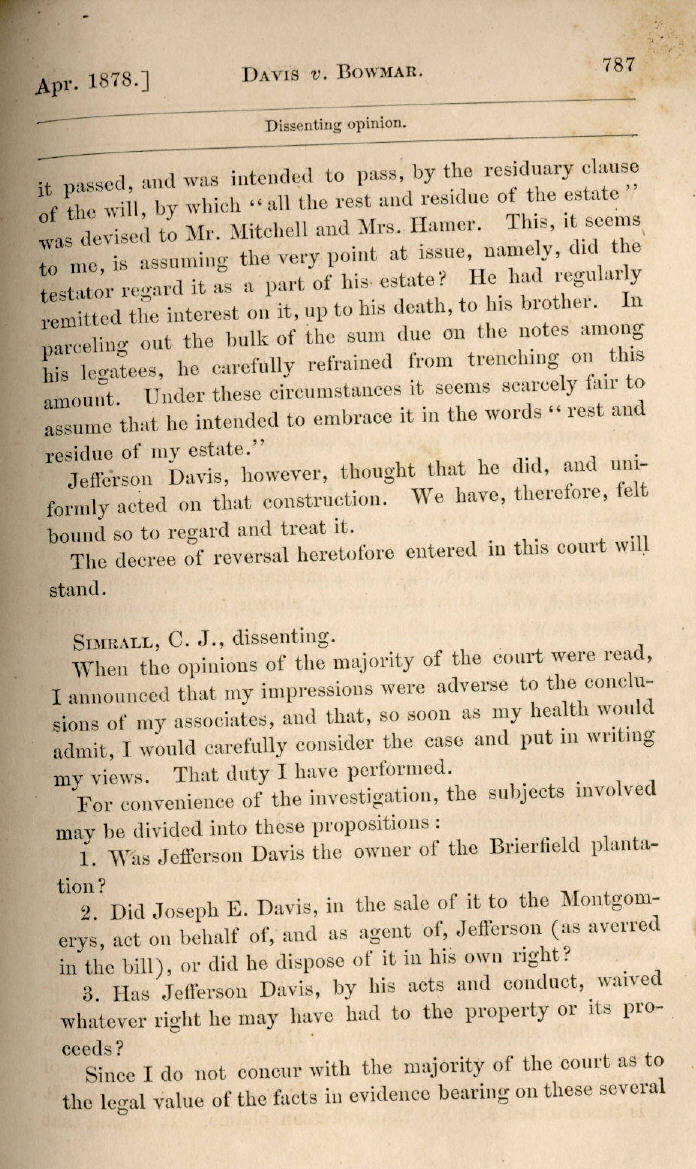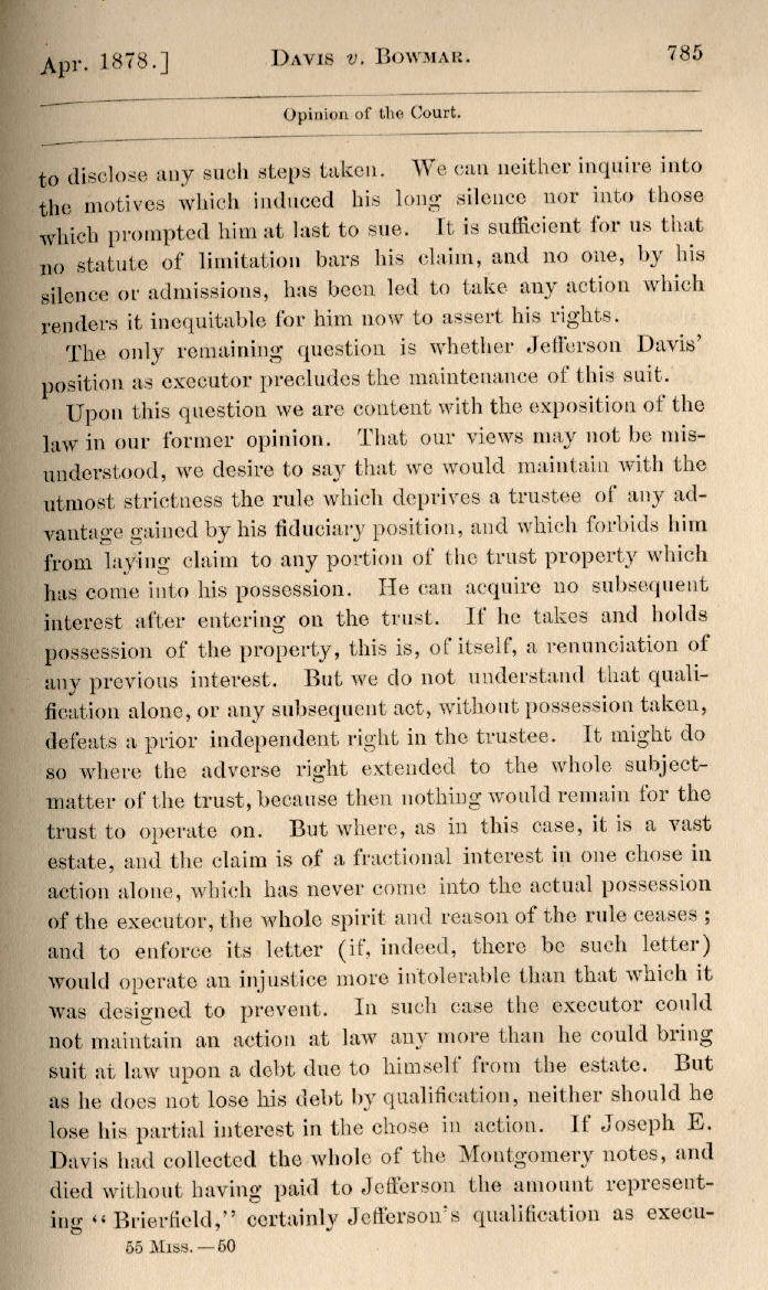 | Jefferson Davis v. J. H. D. Bowmar, Executor, et al. 671, 672, 673, 674, 675, 676, 677, 678, 679, 680, 681, 682, 683, 684, 685, 686, 687, 688, 689, 690, 691, 692, 693, 694, 695, 696, 697, 698, 699, 700, 701, 702, 703, 704, 705, 706, 707, 708, 709, 710, 711, 712, 713, 714, 715, 716, 717, 718, 719, 720, 721, 722, 723, 724, 725, 726, 727, 728, 729, 730, 731, 732, 733, 734, 735, 736, 737, 738, 739, 740, 741, 742, 743, 744, 745, 746, 747, 748, 749, 750, 751, 752, 753, 754, 755, 756, 757, 758, 759, 760, 761, 762, 763, 764, 765, 766, 767, 768, 769, 770, 771, 772, 773, 774, 775, 776, 777, 778, 779, 780, 781, 782, 783, 784, 785, 786, 787, 788, 789, 790, 791, 792, 793, 794, 795, 796, 797, 798, 799, 800, 801, 802, 803, 804, 805, 806, 807, 808, 809, 810, 811, 812, 813, 814 |