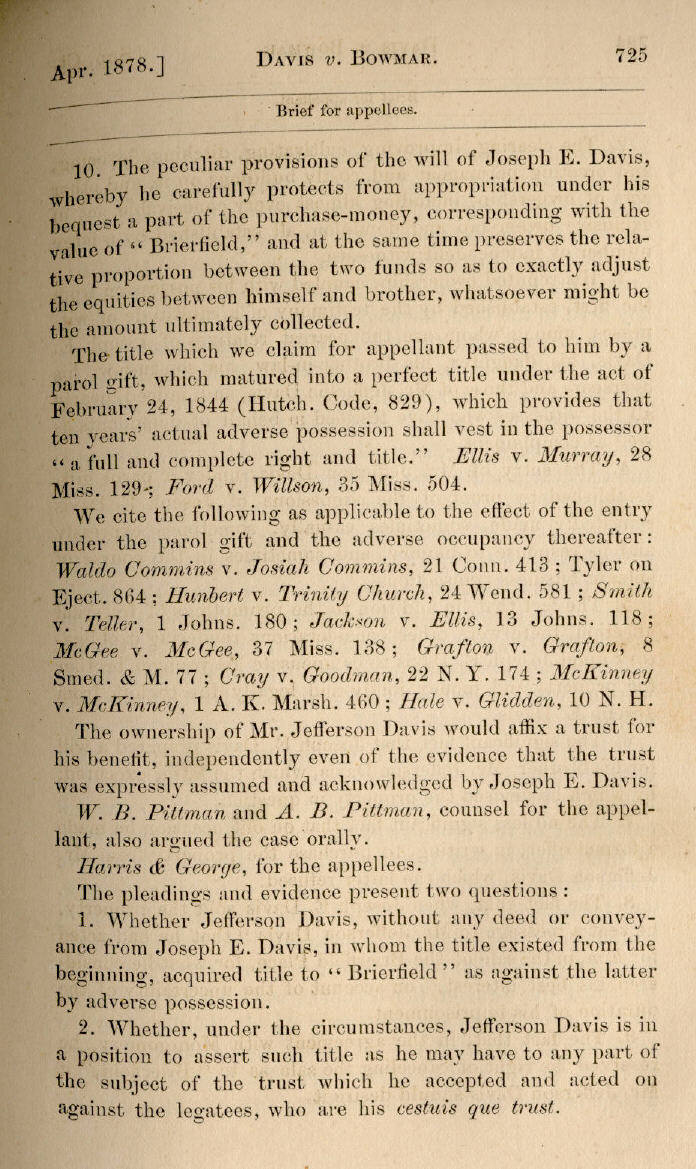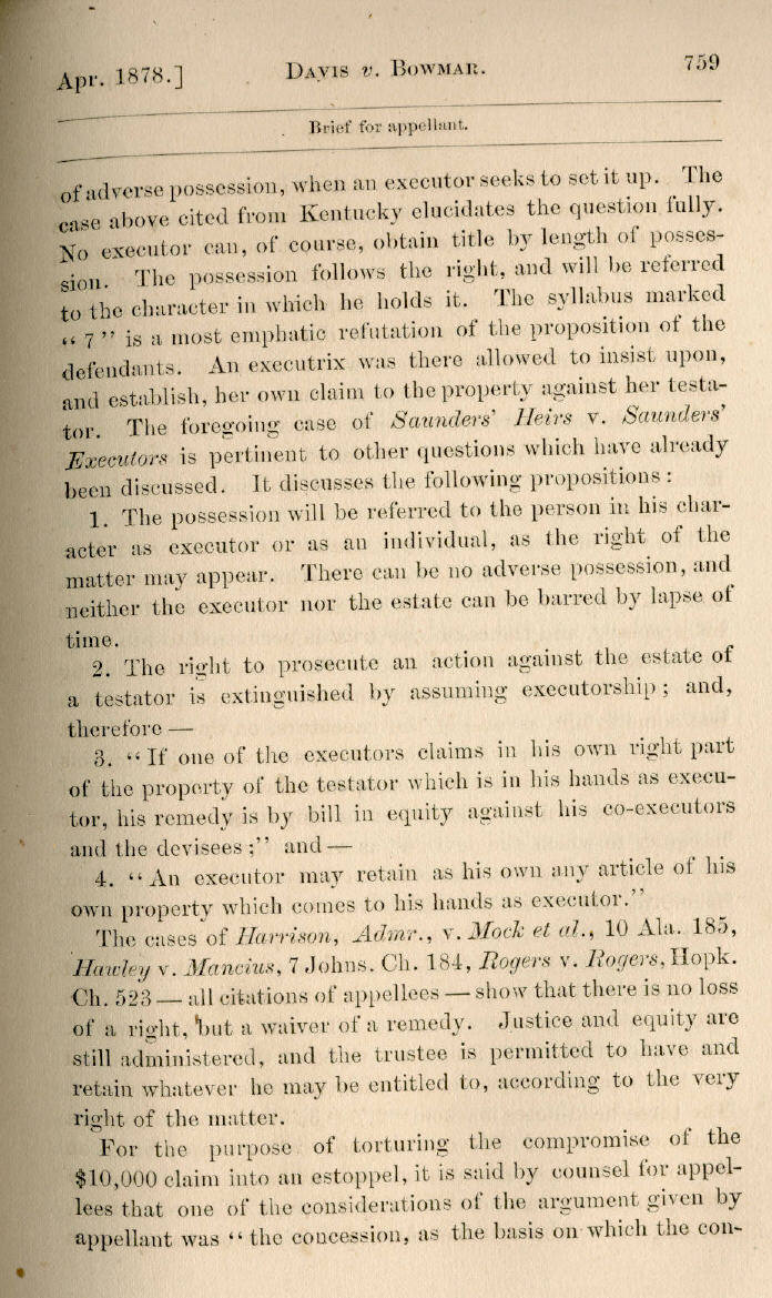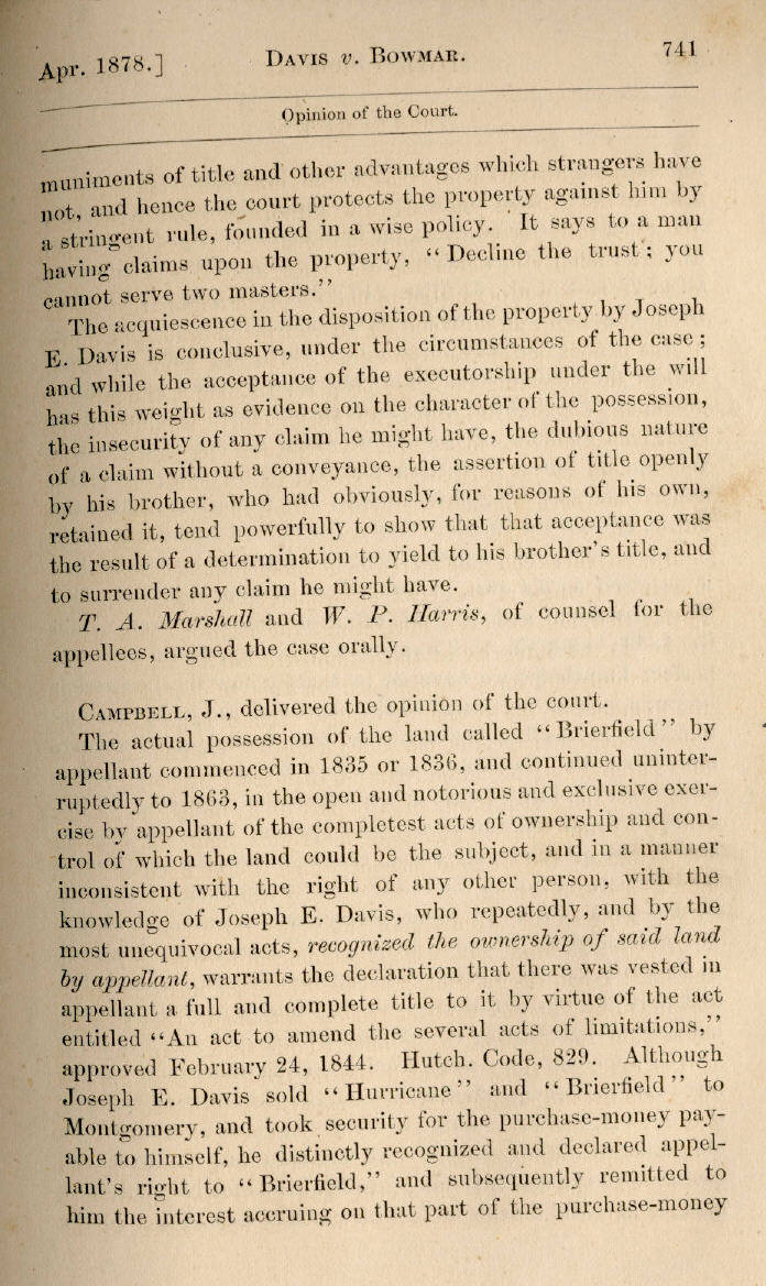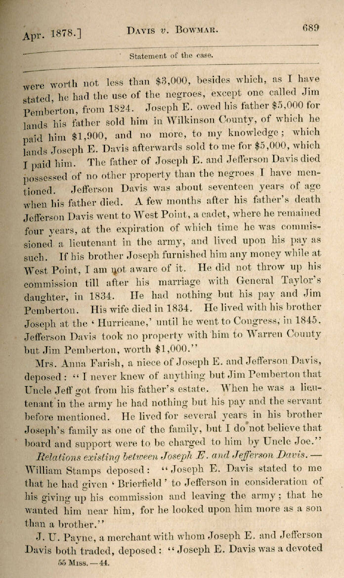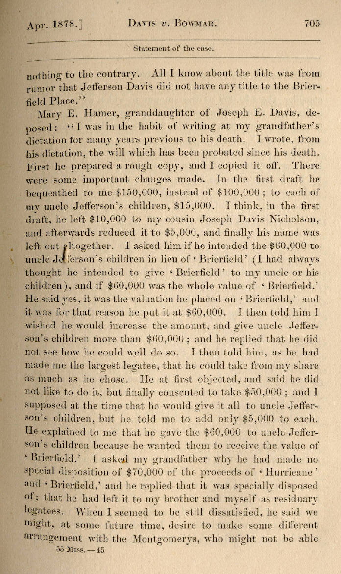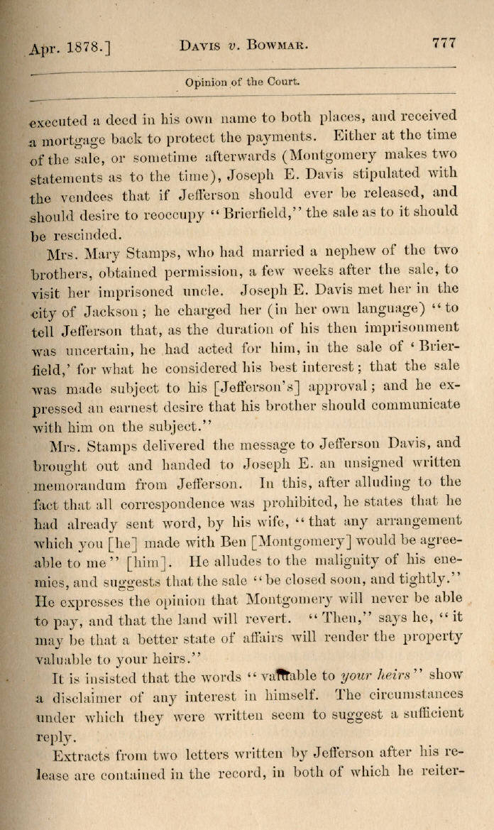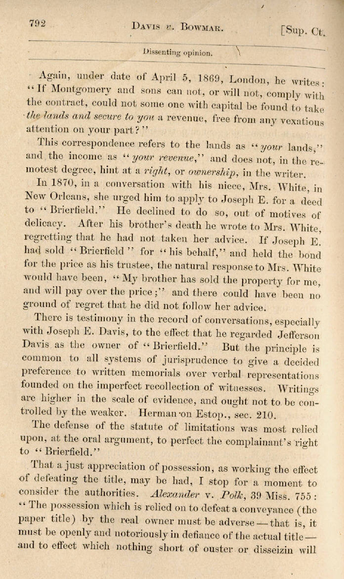 | Jefferson Davis v. J. H. D. Bowmar, Executor, et al. 671, 672, 673, 674, 675, 676, 677, 678, 679, 680, 681, 682, 683, 684, 685, 686, 687, 688, 689, 690, 691, 692, 693, 694, 695, 696, 697, 698, 699, 700, 701, 702, 703, 704, 705, 706, 707, 708, 709, 710, 711, 712, 713, 714, 715, 716, 717, 718, 719, 720, 721, 722, 723, 724, 725, 726, 727, 728, 729, 730, 731, 732, 733, 734, 735, 736, 737, 738, 739, 740, 741, 742, 743, 744, 745, 746, 747, 748, 749, 750, 751, 752, 753, 754, 755, 756, 757, 758, 759, 760, 761, 762, 763, 764, 765, 766, 767, 768, 769, 770, 771, 772, 773, 774, 775, 776, 777, 778, 779, 780, 781, 782, 783, 784, 785, 786, 787, 788, 789, 790, 791, 792, 793, 794, 795, 796, 797, 798, 799, 800, 801, 802, 803, 804, 805, 806, 807, 808, 809, 810, 811, 812, 813, 814 |