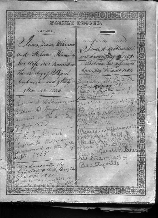 Bible Of James H. Wilkinson & Rebecca Hammond