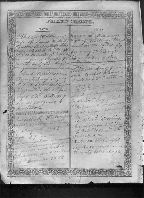 Bible Of James H. Wilkinson & Rebecca Hammond