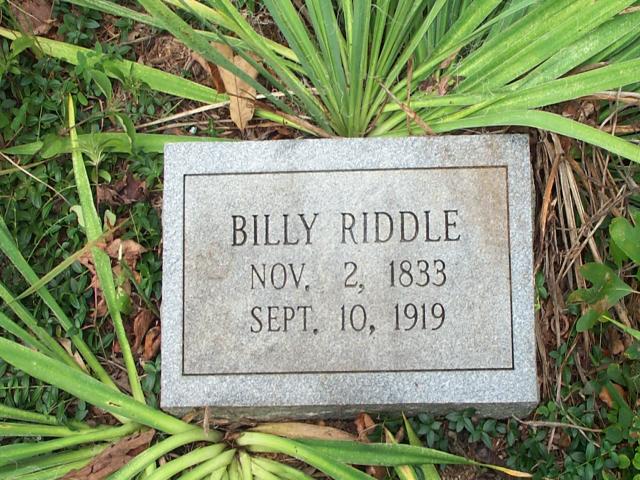 | Riddle | Billy | 2 Nov 1833 | 10 Sep 1919 | briddle.jpg | |