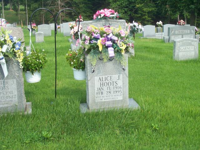 | Hoots | Alice J. | 13 Jan 1916 | 28 Feb 1995 | "What we keep in memory we keep forever" | 14 |