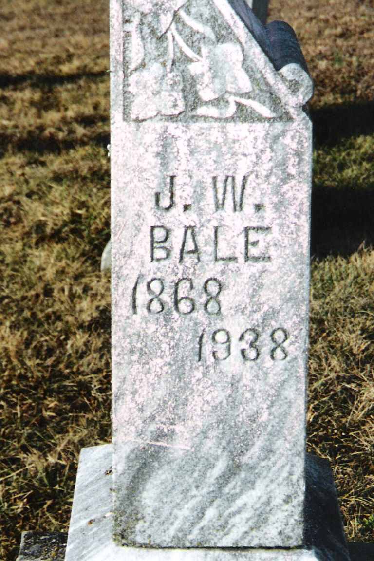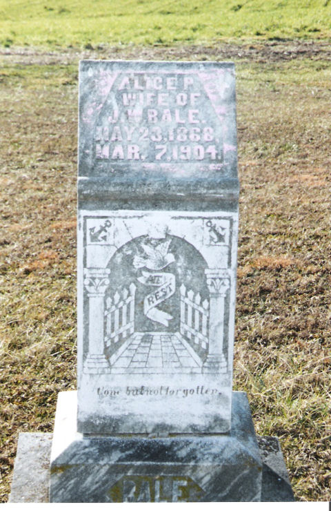 | Bale | Alice P. | 23 May 1868 | 7 Mar 1904 | w/o J.W.; ossw J.W.; "Gone but not forgotten"; "At Rest" | 1, 2 |