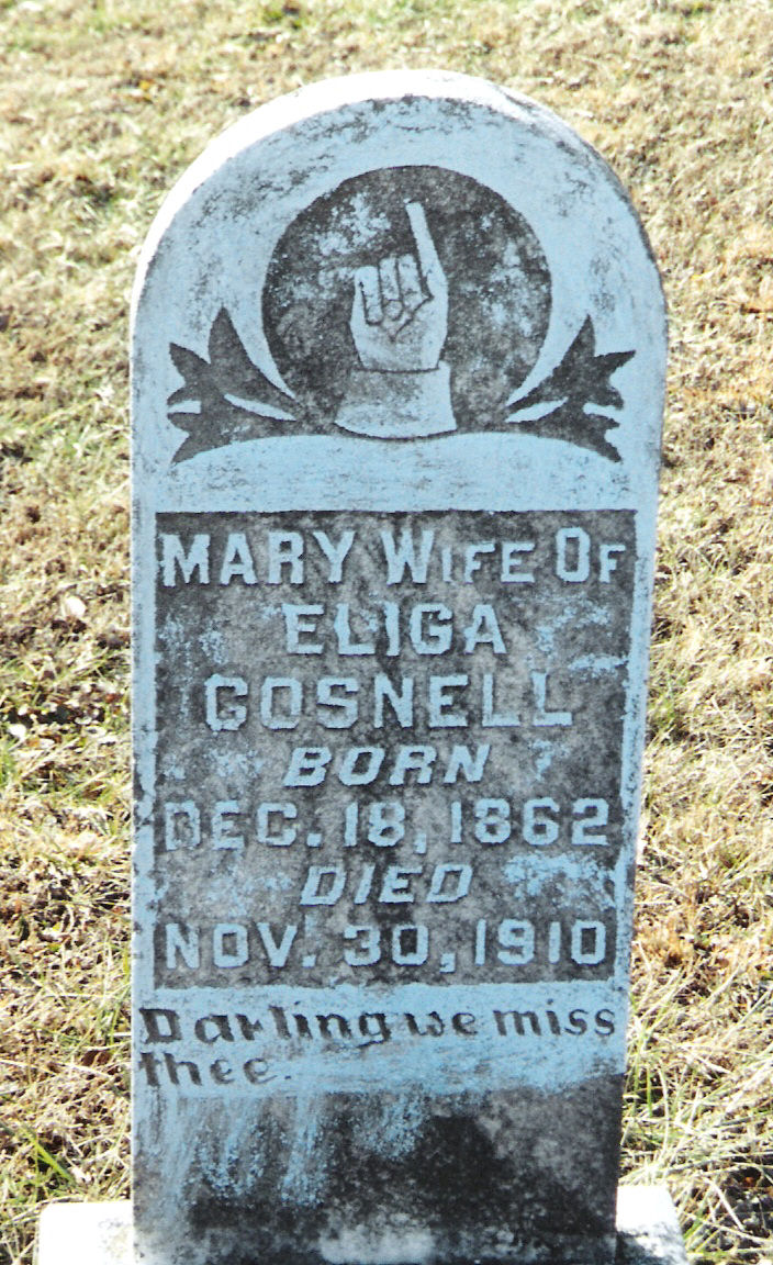 | Gosnell | Mary | 18 Dec 1862 | 30 Nov 1910 | w/o Eliga; "Darling we miss thee" | 19 |