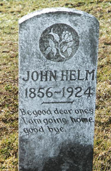 | Helm | John | 1856 | 1924 | "Be good dear ones I am going home. Good bye." | 22 |
