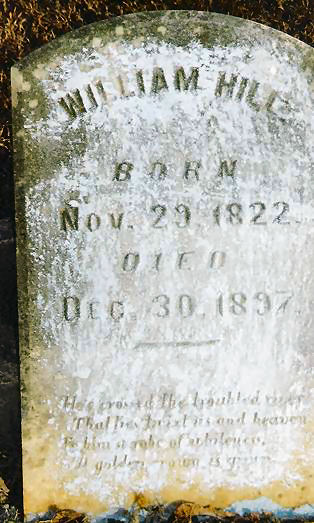 | Hill | William | 29 Nov 1822 | 30 Dec 1897 | "He crossed the troubled river that betwix us and heaven. To him a robe of ___, golden crown is given." | 24 |