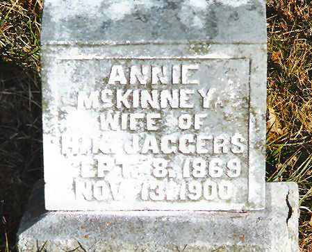 | Jaggers | Annie McKinney | 8 Sep 1869 | 13 Nov 1900 | w/o H.K. | 25 |