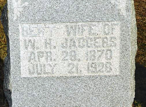 | Jaggers | Bert | 29 Apr 1870 | 21 Jul 1926 | w/o W.H. | 26 |